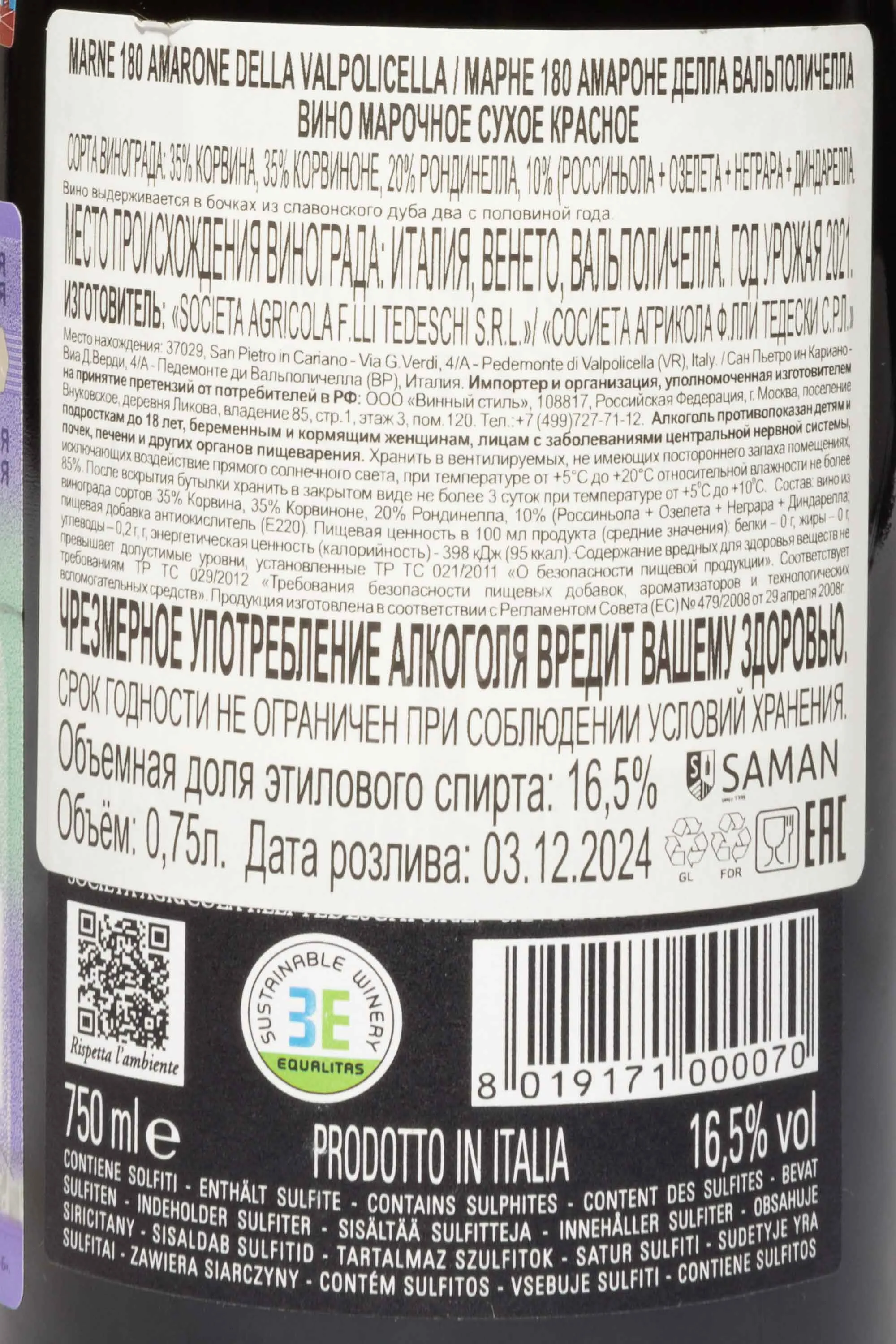 Красное вино итальянского происхождения. Имеет наивысшую категорию DOCG (Denominazione di Origine Controllata e Garantita), производится в провинции Венето, в винодельческом регионе Вальполичелла. Для Амароне используют виноградные сорта Корвина, Рондинелла и Молинара.