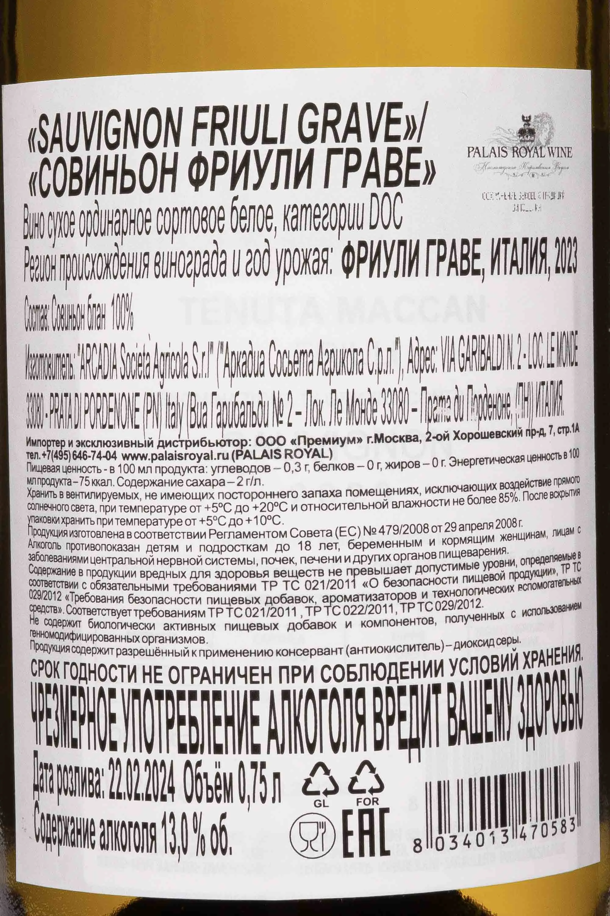 Вино Tenuta Maccan Sauvignon Friuli Grave DOC 2023 0.75 л — высококлассный напиток из одного из самых уважаемых винодельческих регионов северо-восточной Италии. Урожай собирали вручную на гравийных почвах Фриули, богатых минералами и хорошо дренированных, что позволяло ягодам накапливать оптимальный баланс сахара и кислотности. Для сохранения свежести гроздья подвергались мягкому прессованию, а ферментация проводилась в стальных емкостях при контролируемой температуре. Такая технология обеспечивала чистоту вкуса, прозрачность ароматов и выраженное отражение терруара, где прохладные альпийские ветра сочетались с мягким влиянием Адриатического моря.
