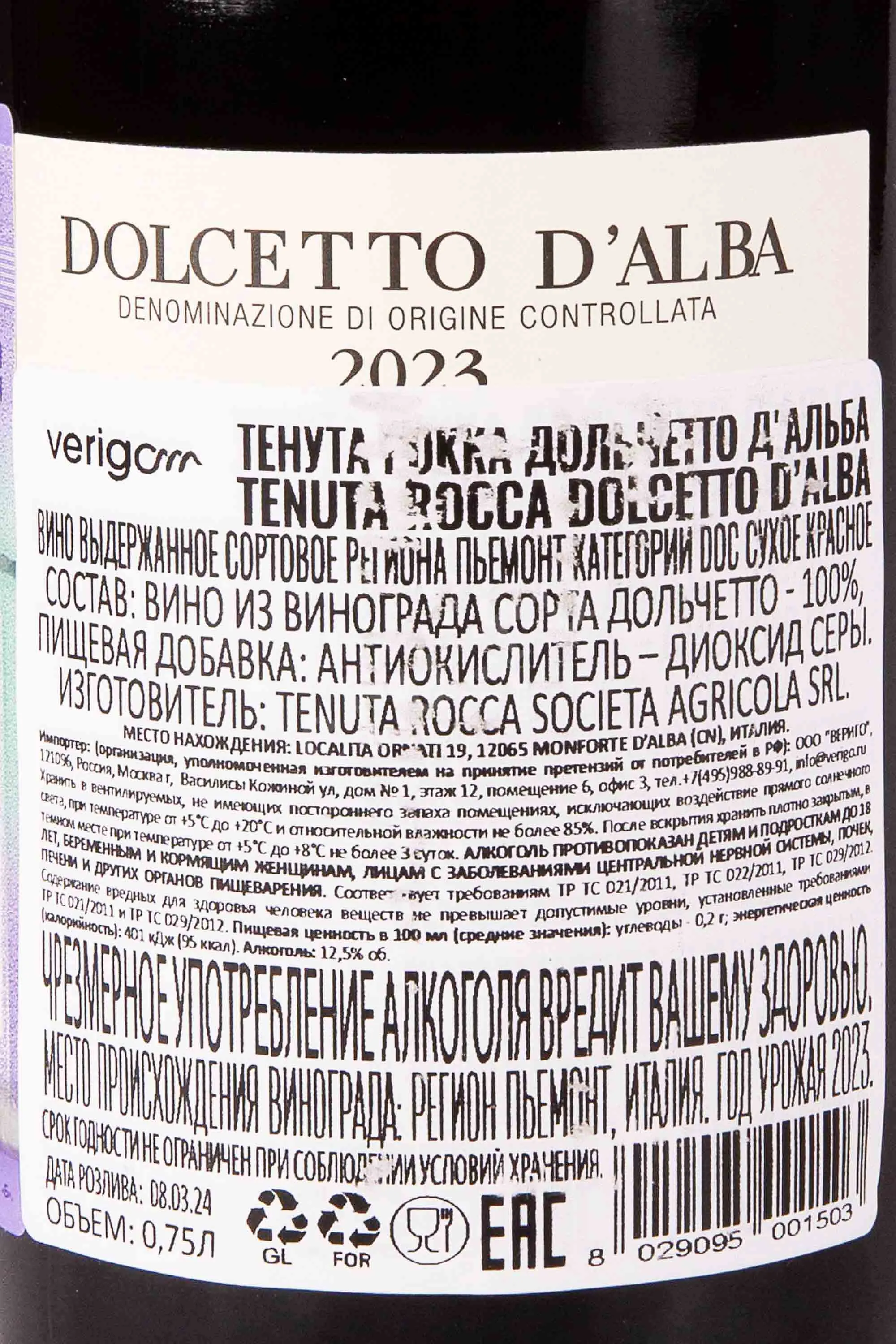 Вино Tenuta Rocca Dolcetto d'Alba 2023 0.75 л представляет собой яркий пример современного подхода к виноделию, где традиции Пьемонта соединяются с высокотехнологичными методами. Из молодого урожая насыщенных ягод сорта Дольчетто мастера отобрали грозди с оптимальным соотношением сахара и кислотности, что позволило добиться свежести и гармонии. После деликатного прессования сусло ферментировалось в стальных чанах при контролируемой температуре, что сохранило фруктовые ноты и естественный характер сорта. Далее молодое вино проходило лёгкую мацерацию с кожицей, использовались вакуумные технологии и регулярное перемешивание осадка, чтобы раскрыть насыщенный цвет, бархатистую текстуру и тонкие таниновые структуры.