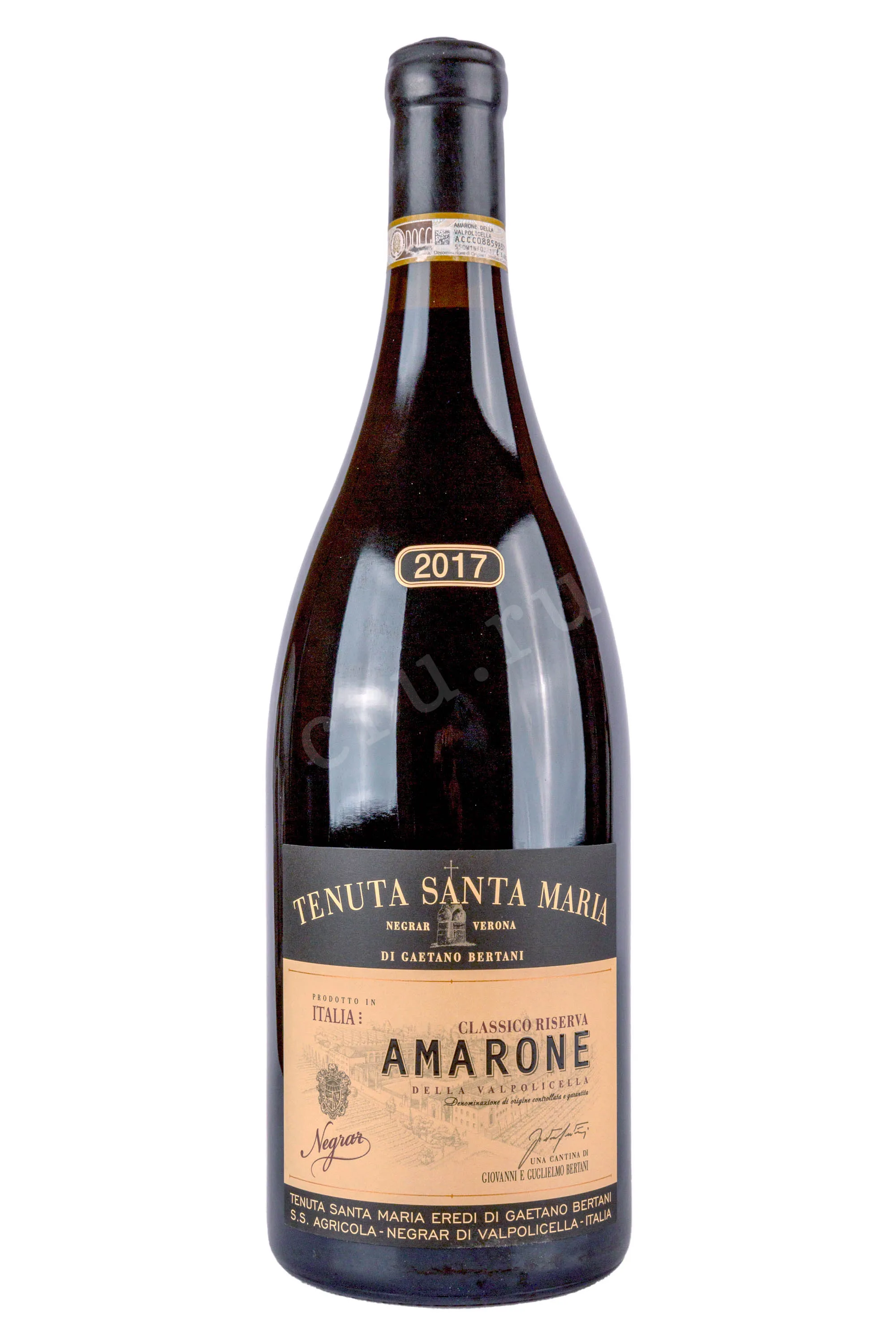 Вино Tenuta Santa Maria Amarone della Valpolicella Riserva 2015 wooden box 3 l – это красный итальянский алкоголь, выпускаемый в больших бутылках объемом 3 л в комплекте с боксом из натурального дерева. Сбор винограда ручным способом проходит во второй декаде сентября. На заводе ягоды подсушивают и сбраживают в резервуарах из нержавеющей стали. Созревает сухое вино сначала в течение 4-х лет в барриках из лимузенского дуба, а затем еще 6 месяцев непосредственно в бутылках. Розлив напитка был осуществлен в феврале 2021 года.