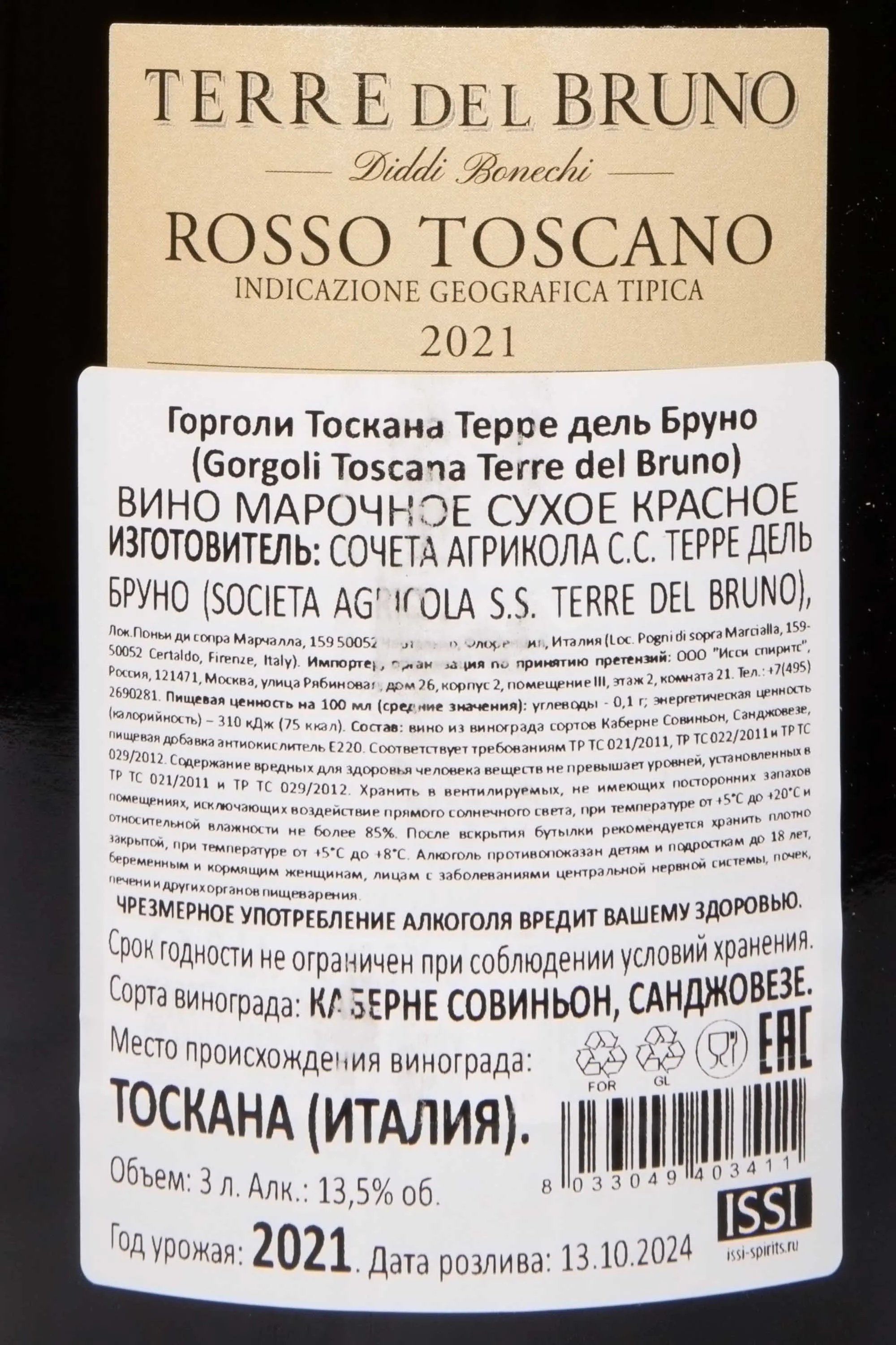 Вино Terre del Bruno Gorgoli wooden box 2020 3 л — лимитированное издание, воплощающее итальянские традиции и ручное мастерство. Урожай собирается вручную в холмистой местности центральной Тосканы, где виноградные лозы получают оптимальное количество солнечного света и господствуют благоприятные известково-глинистые почвы, богатые минералами. Ферментация проходит при контролируемой температуре в деревянных чанах, после чего напиток выдерживается в дубовых бочках 18 месяцев, приобретая особую сложность и глубокий характер. Эксклюзивный формат в деревянном ящике подчеркивает престижность напитка и подходит для длительного хранения или коллекционирования.