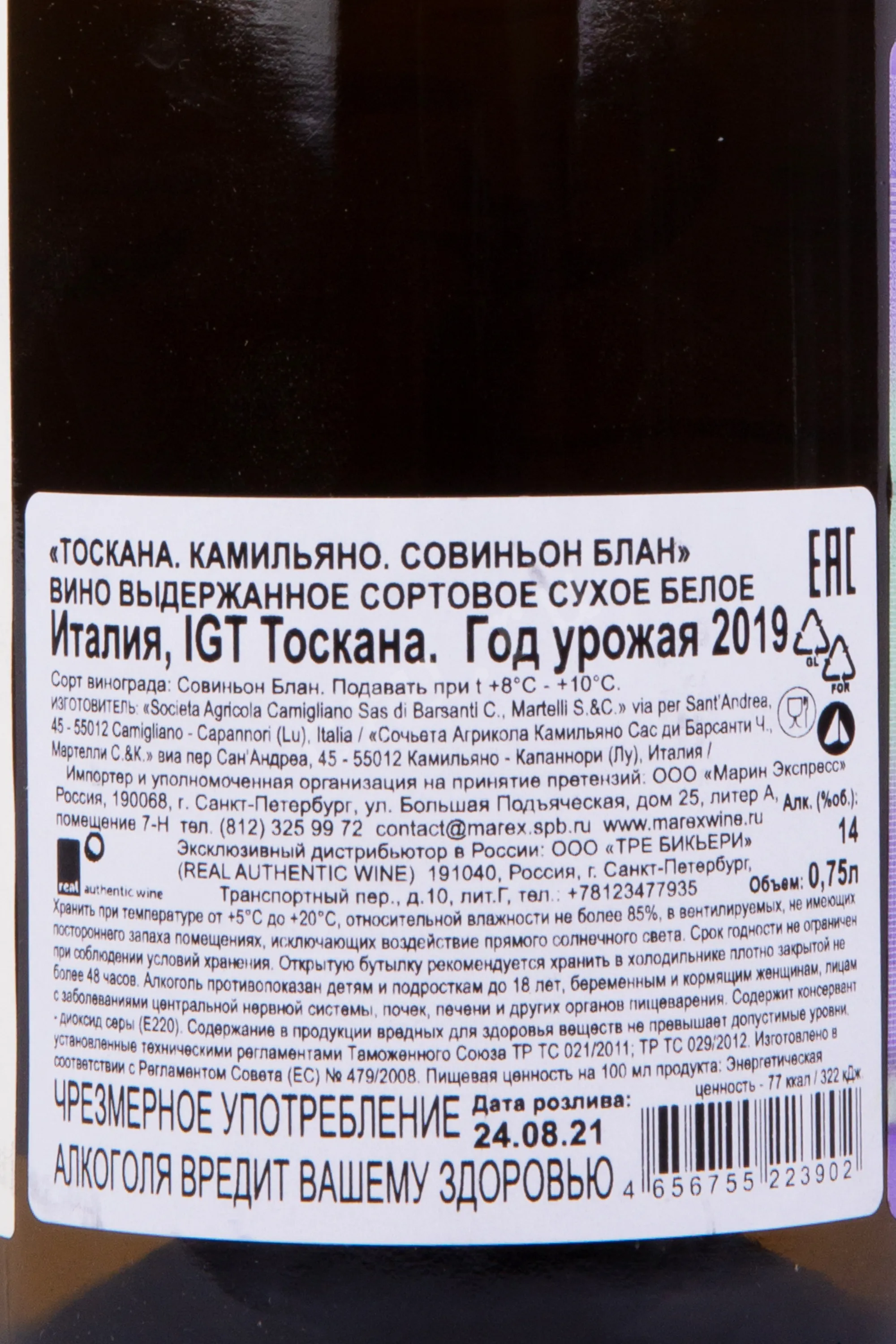 Тоскана Камильяно Совиньон Блан 2019 0.75