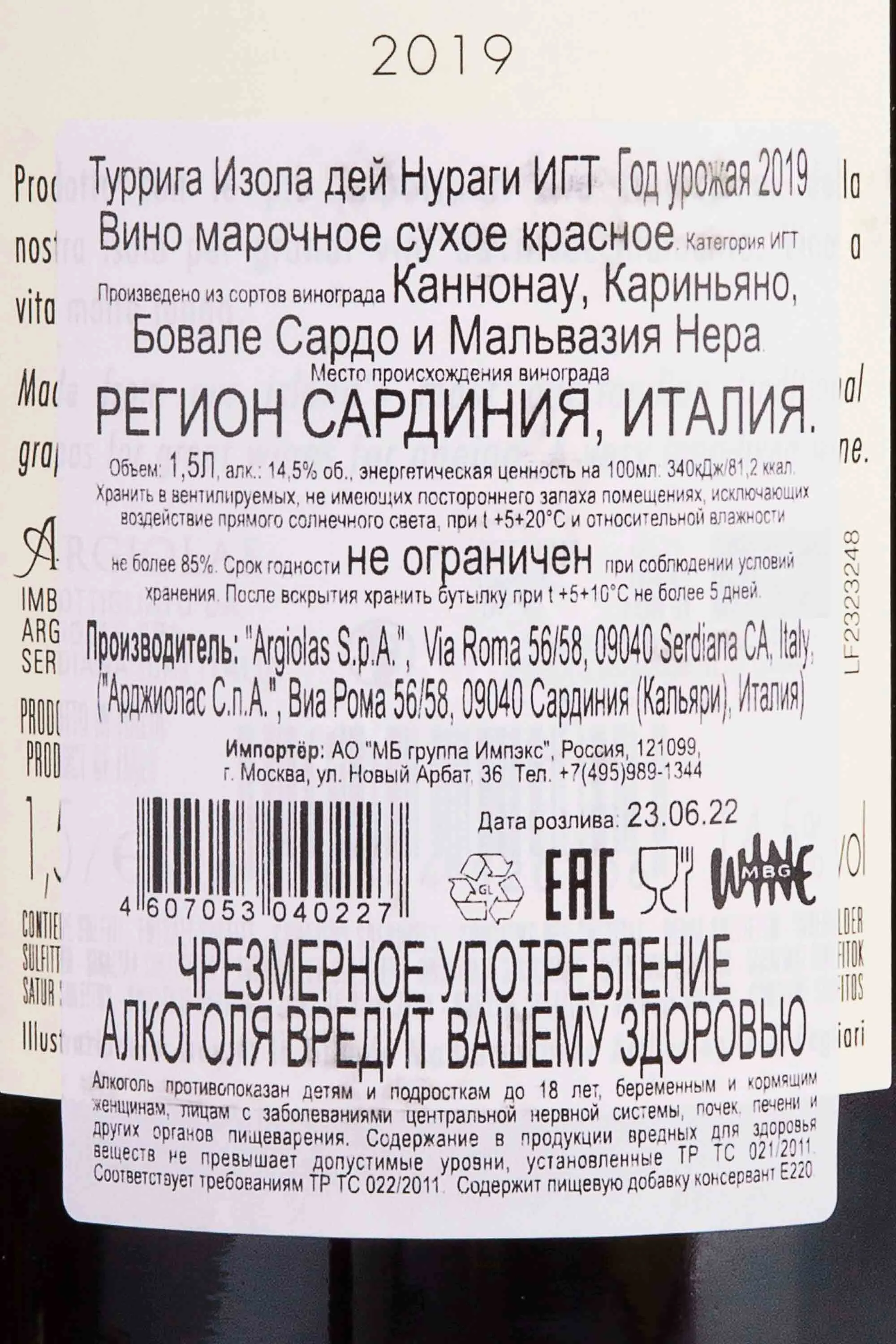 Туррига Изола дей Нураги в деревянной упаковке 2019 1.5