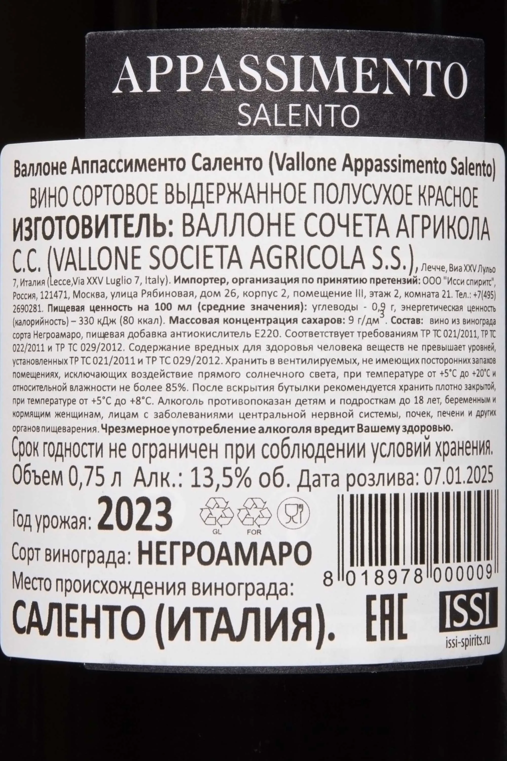 Вино Vallone Appassimento Salento IGP 2023 0.75 л создаётся методом аппассименто, при котором тщательно отобранные гроздья высушиваются на воздухе, концентрируя природную сладость и усиливая глубину аромата. Урожай собирают вручную в регионе Саленто, известном богатством почв, пропитанных минералами и согретых щедрым солнцем Средиземноморья. Благодаря уникальному микроклимату полуострова виноград сохраняет яркость вкуса и приобретает исключительный характер, выраженный насыщенной структурой и многогранностью оттенков.