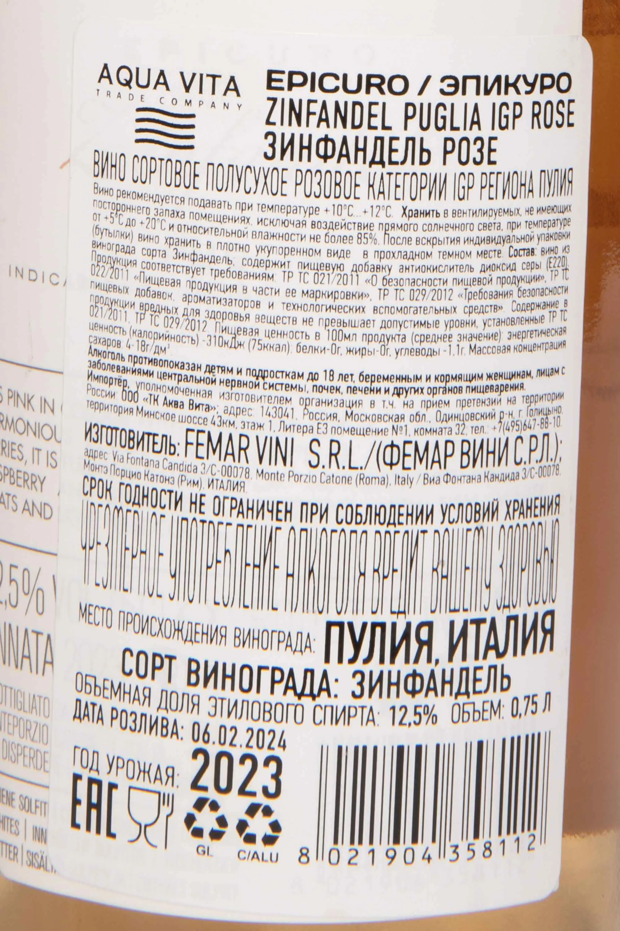 Epicuro Zinfandel Rose Puglia IGP 2023 0.75 л купить - Итальянское вино Эпикуро Зинфандель Розе Апулия ИГП цена в магазинег. Москва, ул. Профсоюзная, д. 16/1010:00-22:00 Ежедневно+7 (495) 920-20-02info@cru.ru