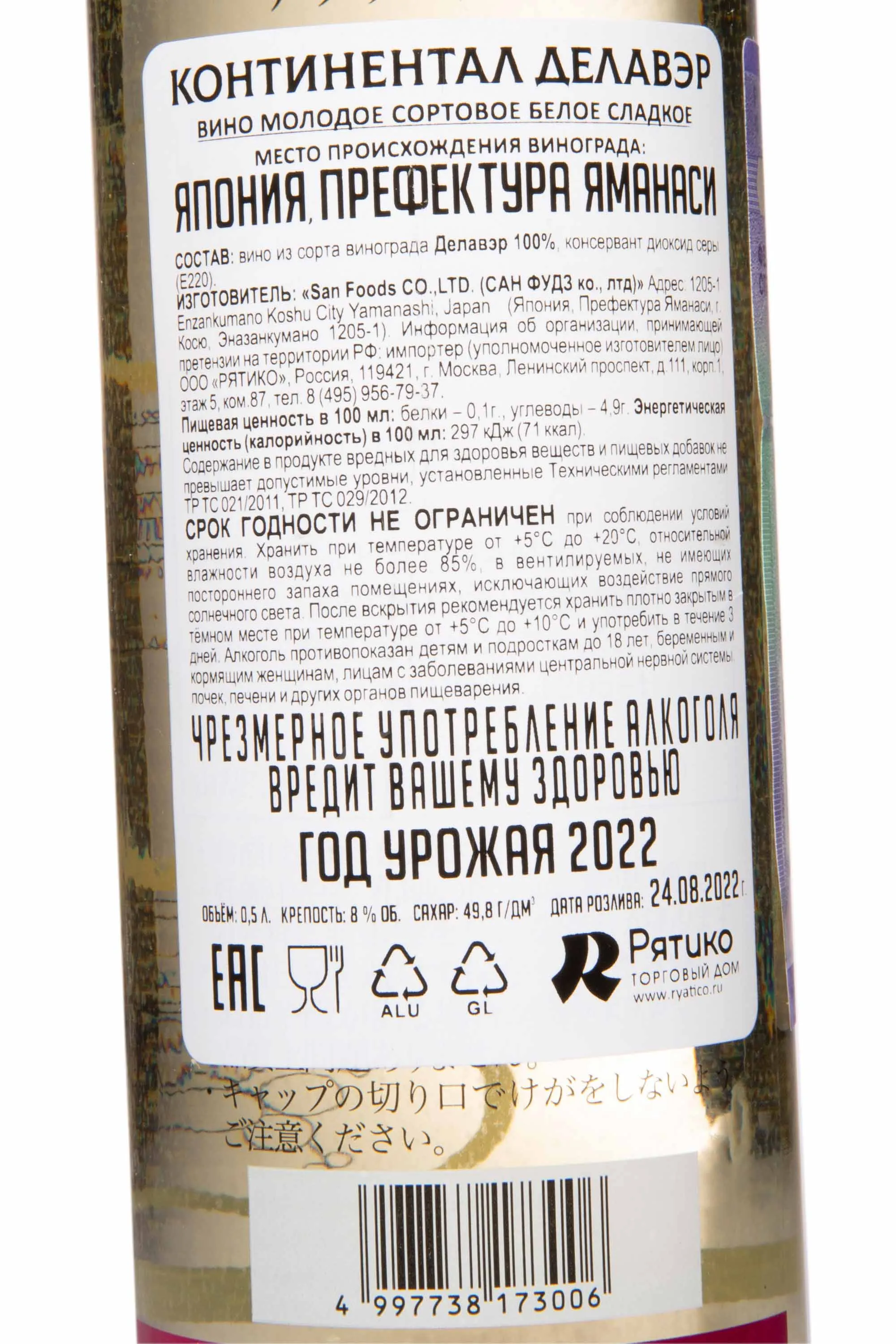 Continental Delaware 0.5 л купить - Японское вино Континентал Делавэр цена в магазине