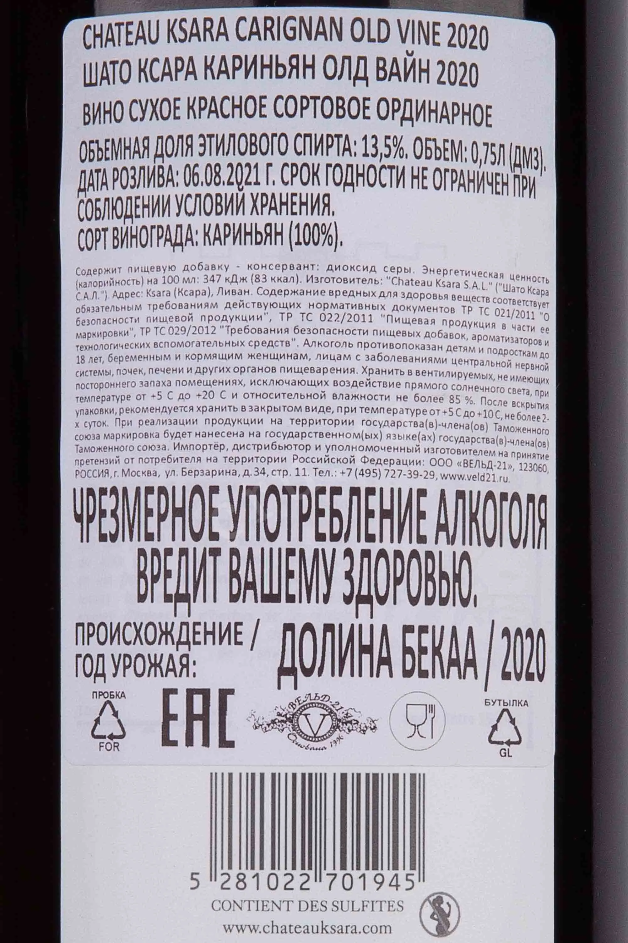Chateau Ksara Carignan Old Vine 0.75 л купить - Ливанское вино Шато Ксара Кариньян Олд Вайн цена в магазинег. Москва, ул. Профсоюзная, д. 16/1010:00-22:00 Ежедневно+7 (495) 920-20-02info@cru.ru