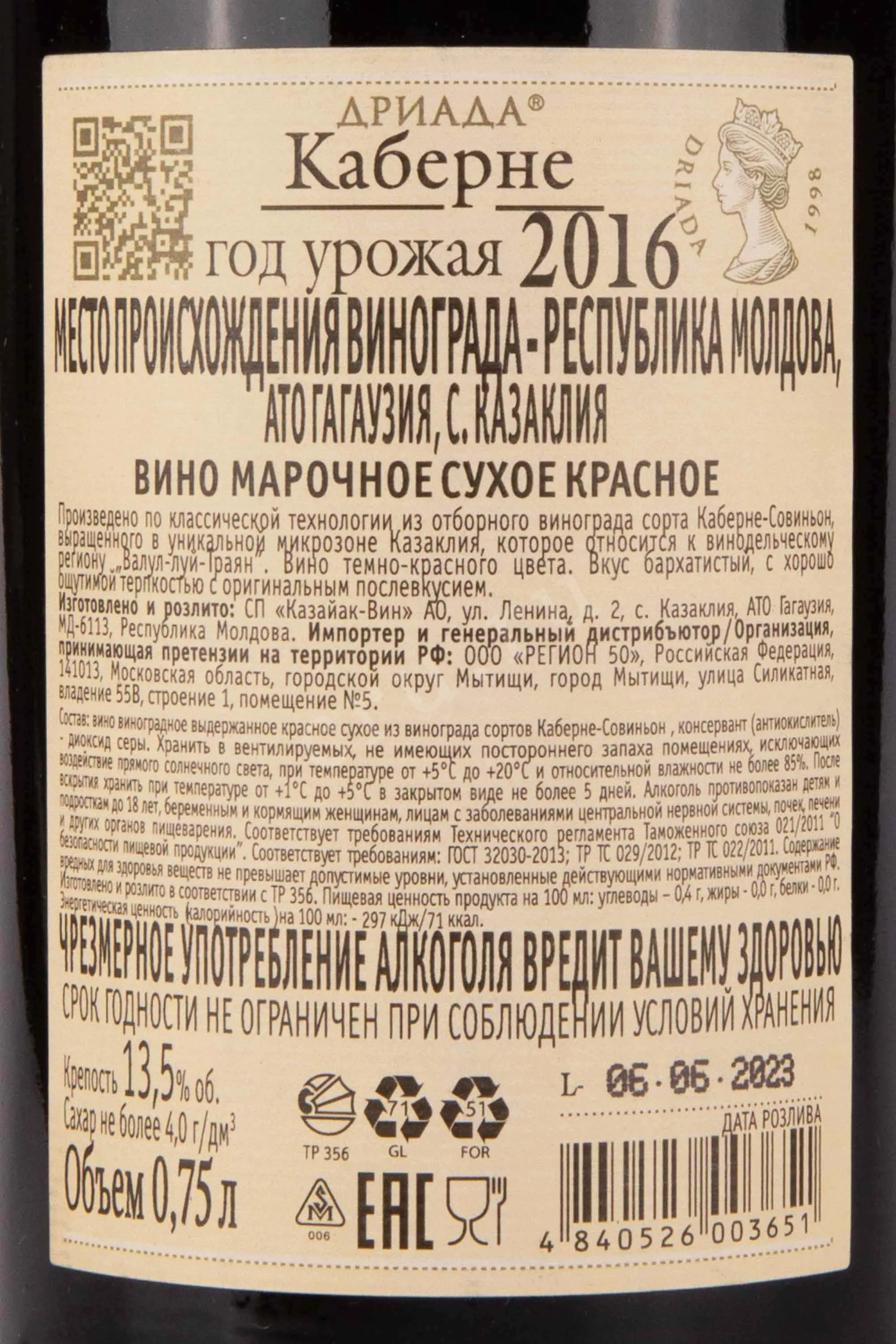 Driada Cabernet 0.75 л купить - Молдавское вино Дриада Каберне цена в магазинег. Москва, ул. Профсоюзная, д. 16/1010:00-22:00 Ежедневно+7 (495) 920-20-02info@cru.ru