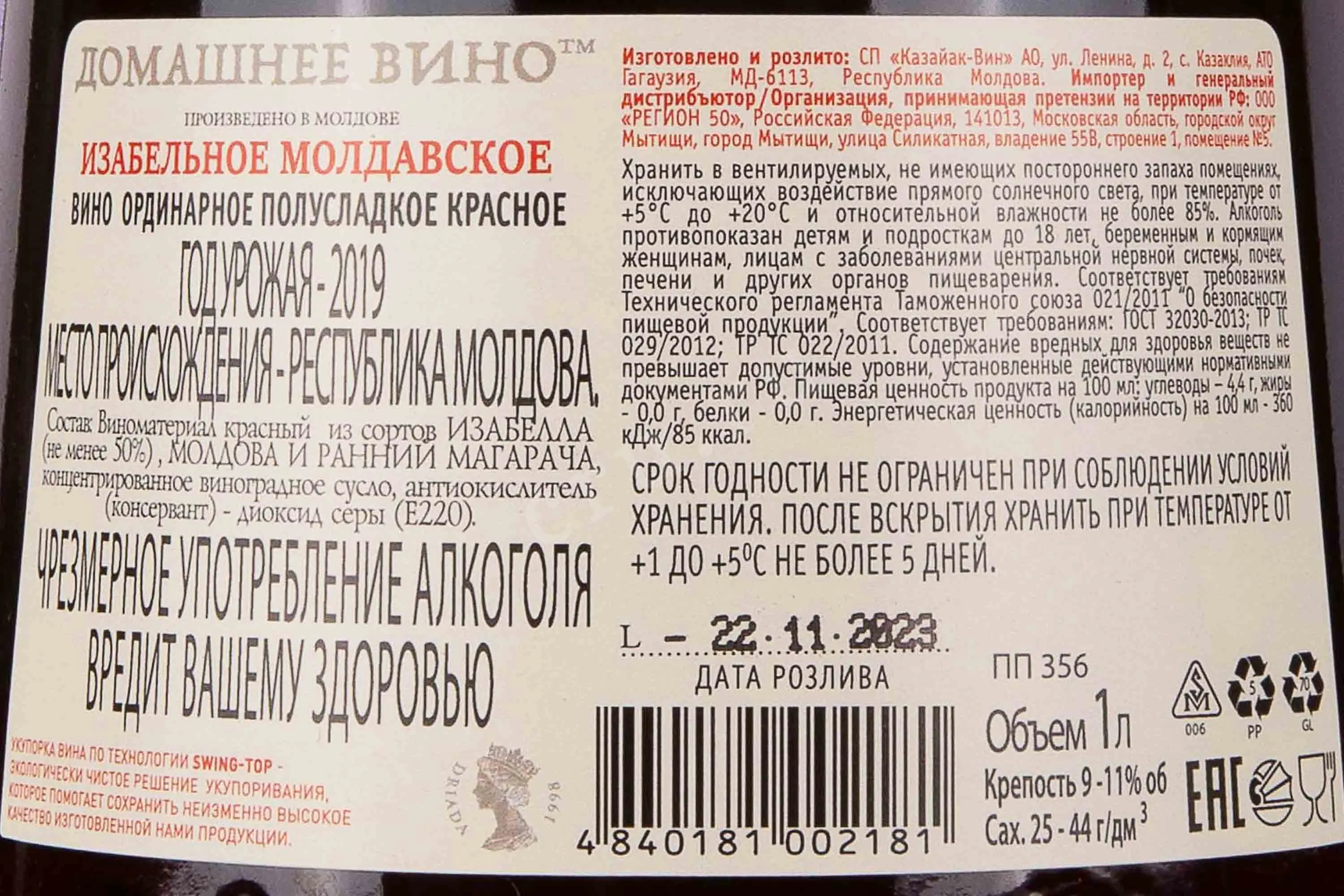 Driada Изабельное Молдавское Домашнее вино 2019 1