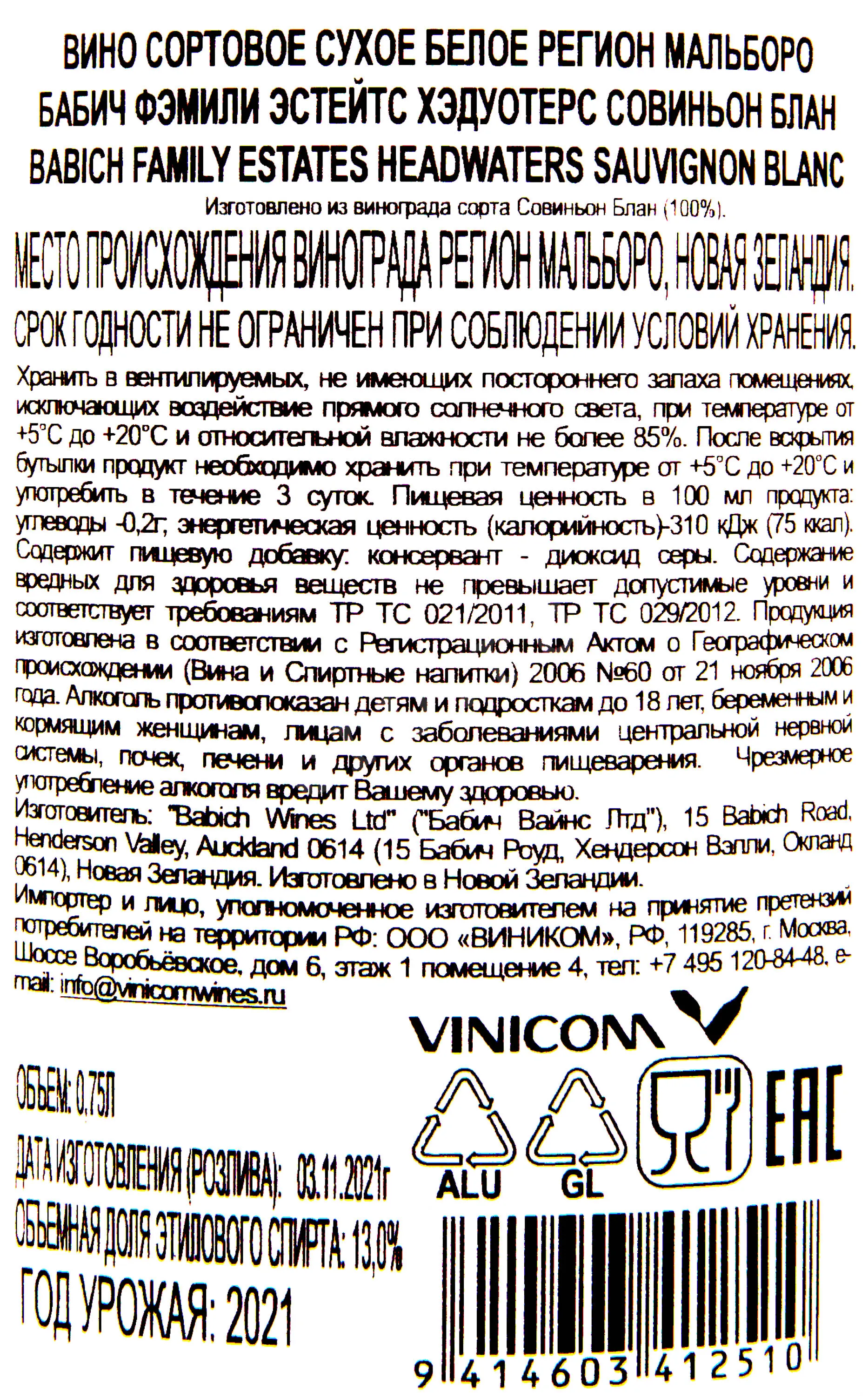 Белое сухое вино Babich Family Estates Headwaters Organic Sauvignon Blanc 2021 год 0,75 л создано семейной винодельней Babich, известной органическими методами земледелия. Урожай для этого напитка собирали в долине Вайрау в регионе Мальборо, Новая Зеландия, славящемся уникальным климатом и почвами. Терруар отличается умеренными температурами, солнечным освещением и прохладными морскими бризами, благодаря чему виноград дозревает равномерно, приобретая яркий, фруктовый профиль. Его выращивали без применения синтетических удобрений и химических средств защиты растений. После бережного сбора урожая проводили ферментацию в стальных резервуарах при контролируемой низкой температуре, чтобы максимально сохранить свежесть и чистоту аромата.
