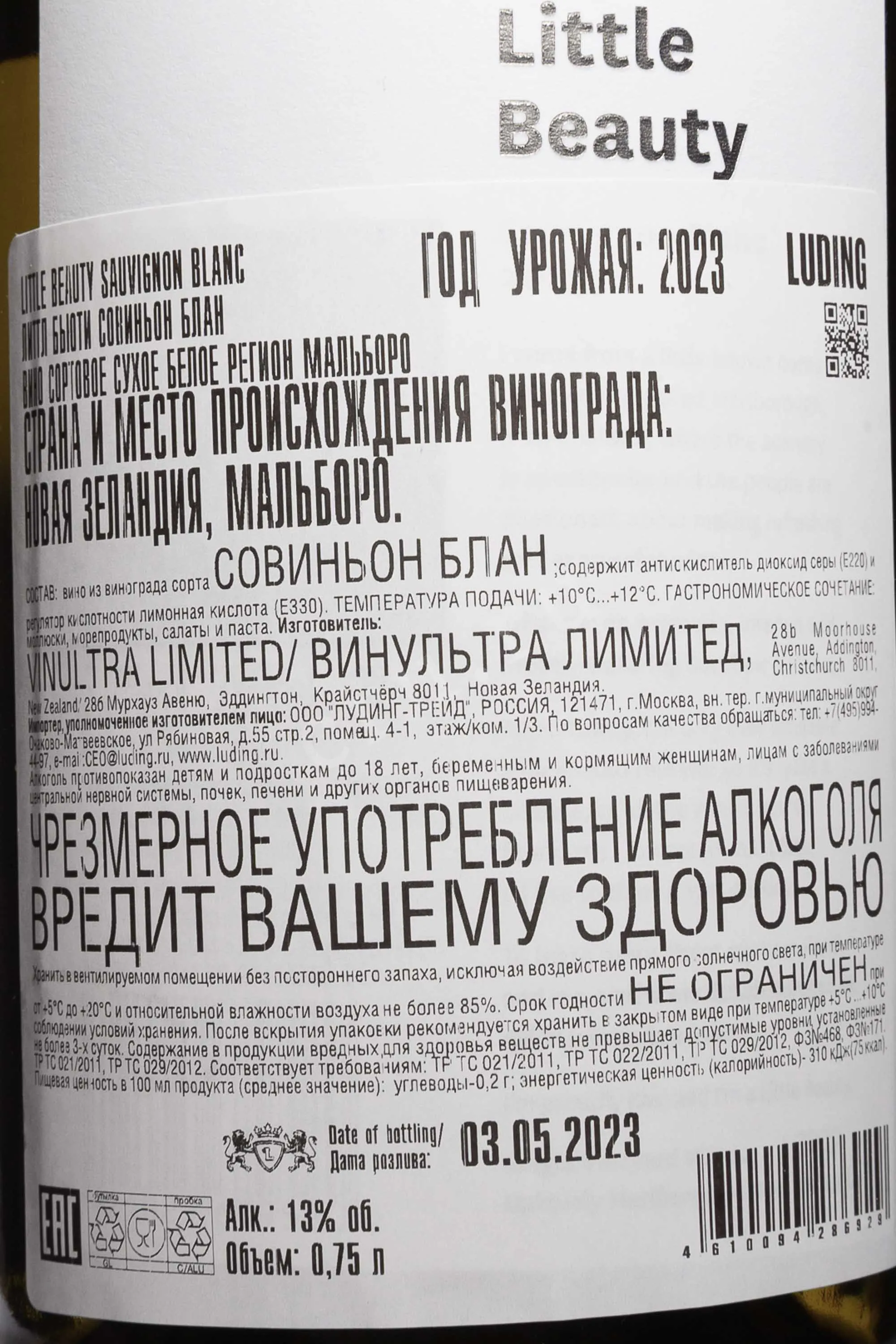 Белое сухое вино Little Beauty Sauvignon Blanc 2023 года 0,75 л создано в ярком и типичном для Мальборо стиле. Оно отличается чистым ароматом, высокой свежестью и выраженной фруктовой палитрой. Виноград был выращен в долине Уэйхопай на каменистых почвах с хорошим дренажем, где небольшие включения глины и суглинка помогают удерживать влагу. Урожай 2023 года прошёл в условиях умеренно прохладной погоды, что позволило ягодам развить насыщенный аромат при сохранении кислотности. Сбор проведён в апреле. Использовано щадящее прессование и ферментация при 12-14 °C в стальных резервуарах, что сохранило природную ароматичность сорта Совиньон Блан. Вино выпускается ограниченной партией. Оно получило престижные награды на международных конкурсах.