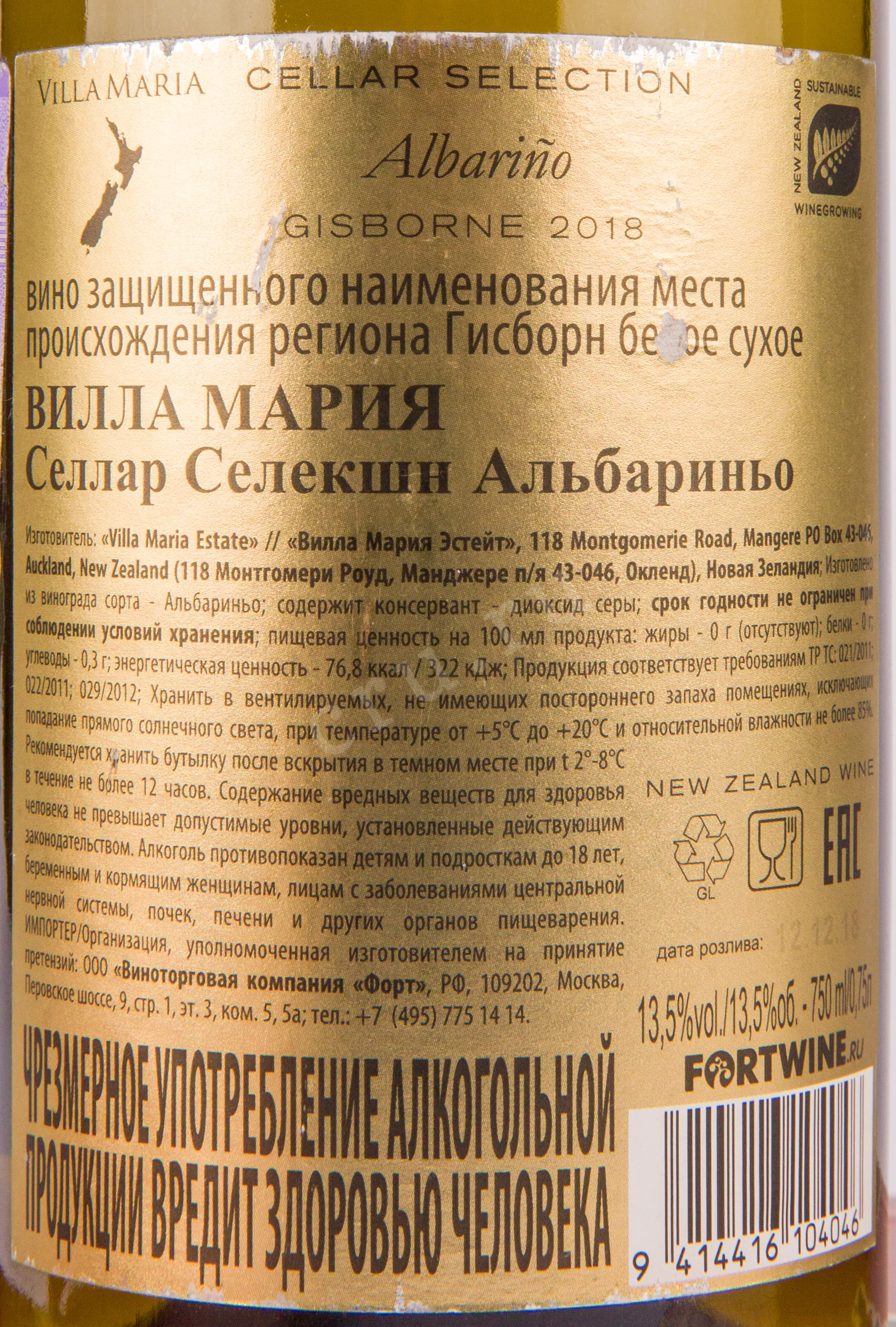 Белое сухое вино Villa Maria Cellar Selection Albarino 2018 0,75 л — свежее, гармоничное, создается в винодельческом регионе Гисборн, расположенном на востоке Новой Зеландии. Сорт Альбариньо здесь выращивается на почвах аллювиального происхождения, богатых известняком и глиной. Урожай винограда собирают вручную, что позволяет отобрать только наиболее качественные ягоды. Ферментация проходит как в резервуарах из нержавеющей стали — 95% сусла, так и в дубовых бочках вместе с осадком - 10%. Это помогает сохранить природную свежесть и тонкие фруктовые оттенки, но также придать вкусу плотность. Особенностью производства является финальное составление купажа из двух партий. Это придает вину дополнительную глубину и особую структуру, подчеркивая его индивидуальный характер.