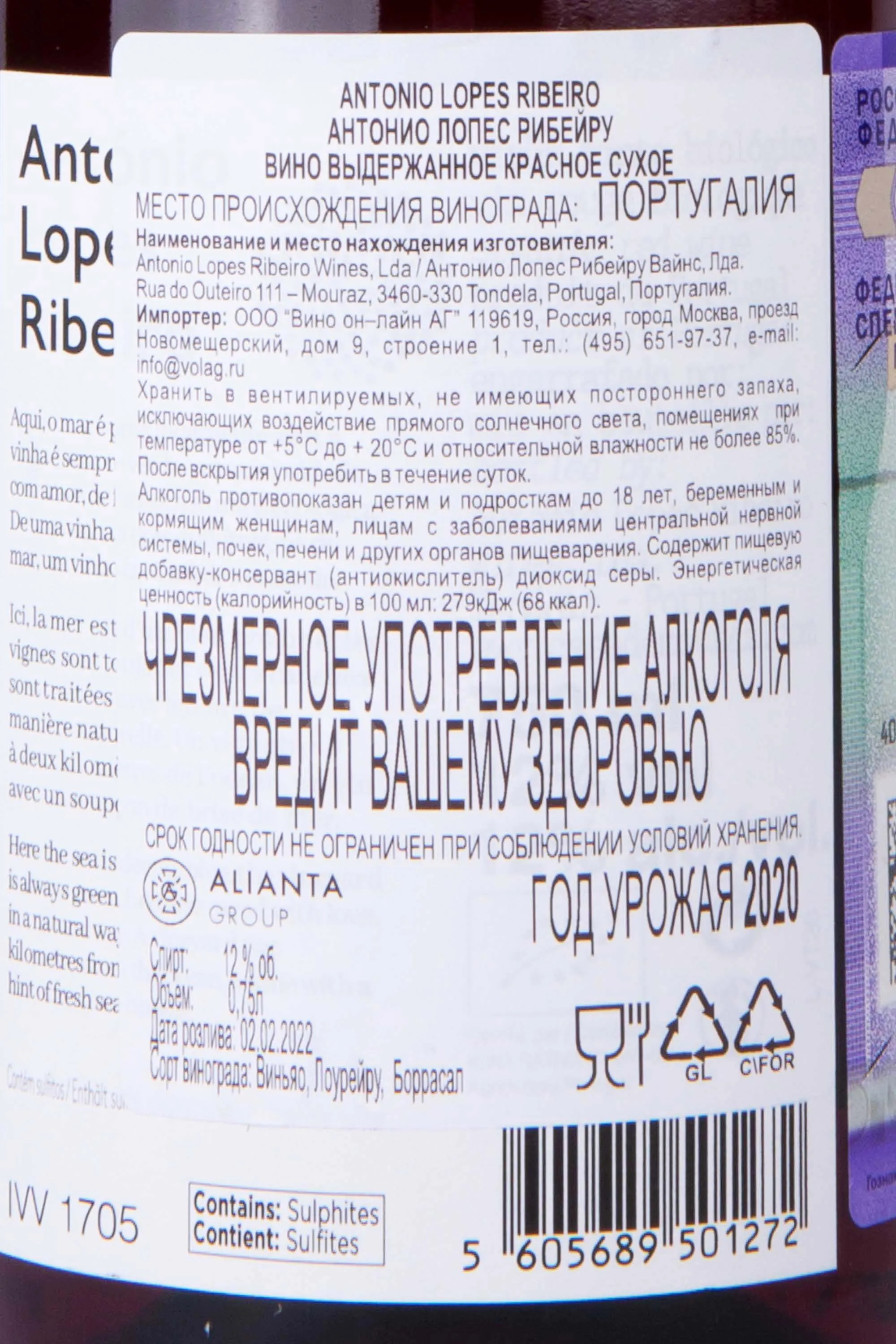 Antonio Lopes Ribeiro 0.75 л купить - Португальское вино Антонио Лопес Рибейру цена в магазине г. Москва, ул. Профсоюзная, д. 16/10 10:00-22:00 Ежедневно +7 (495) 920-20-02 info@cru.ru