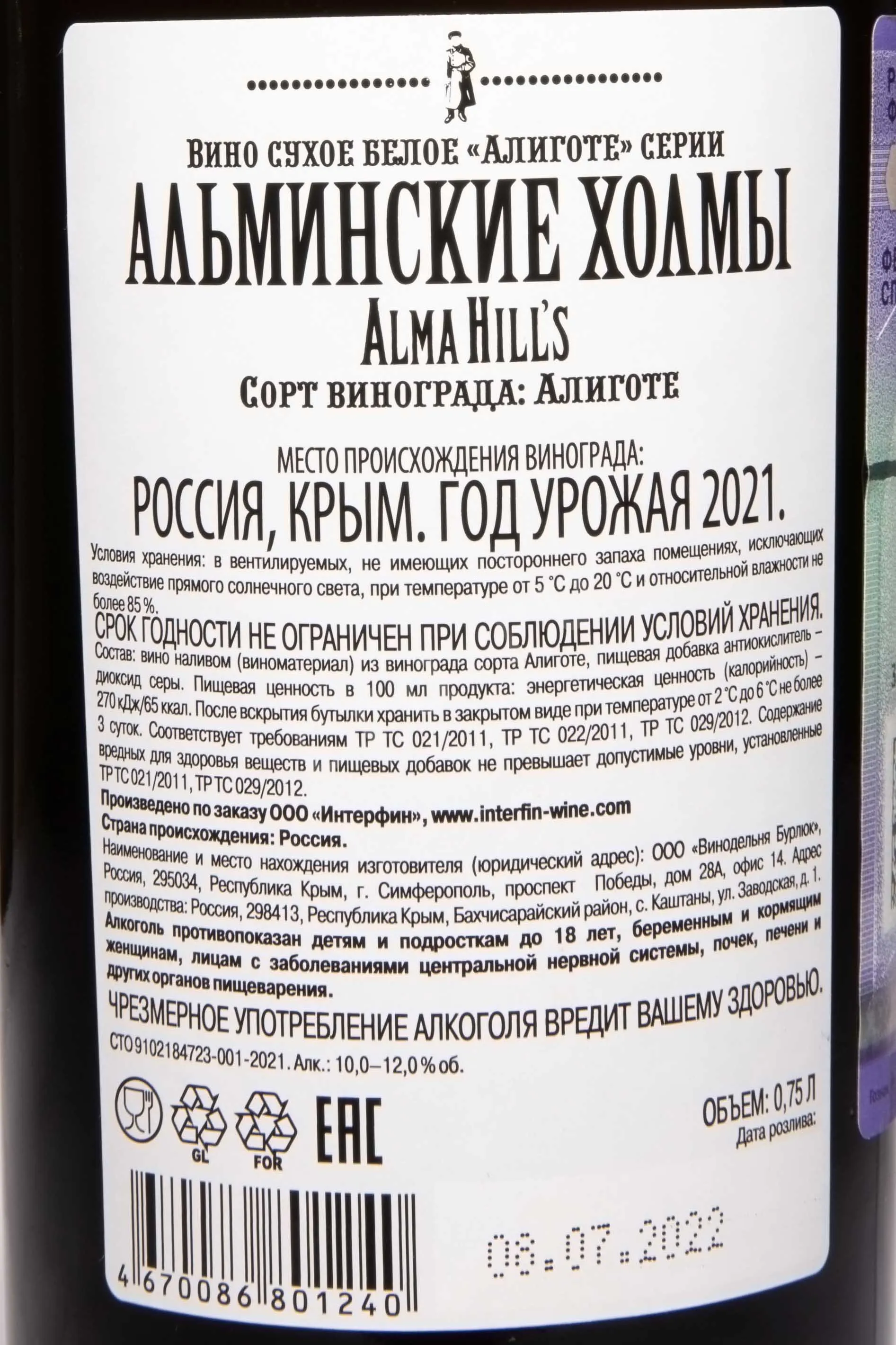 Вино Валерий Захарьин Альминские холмы Алиготе 2021 0.75 л