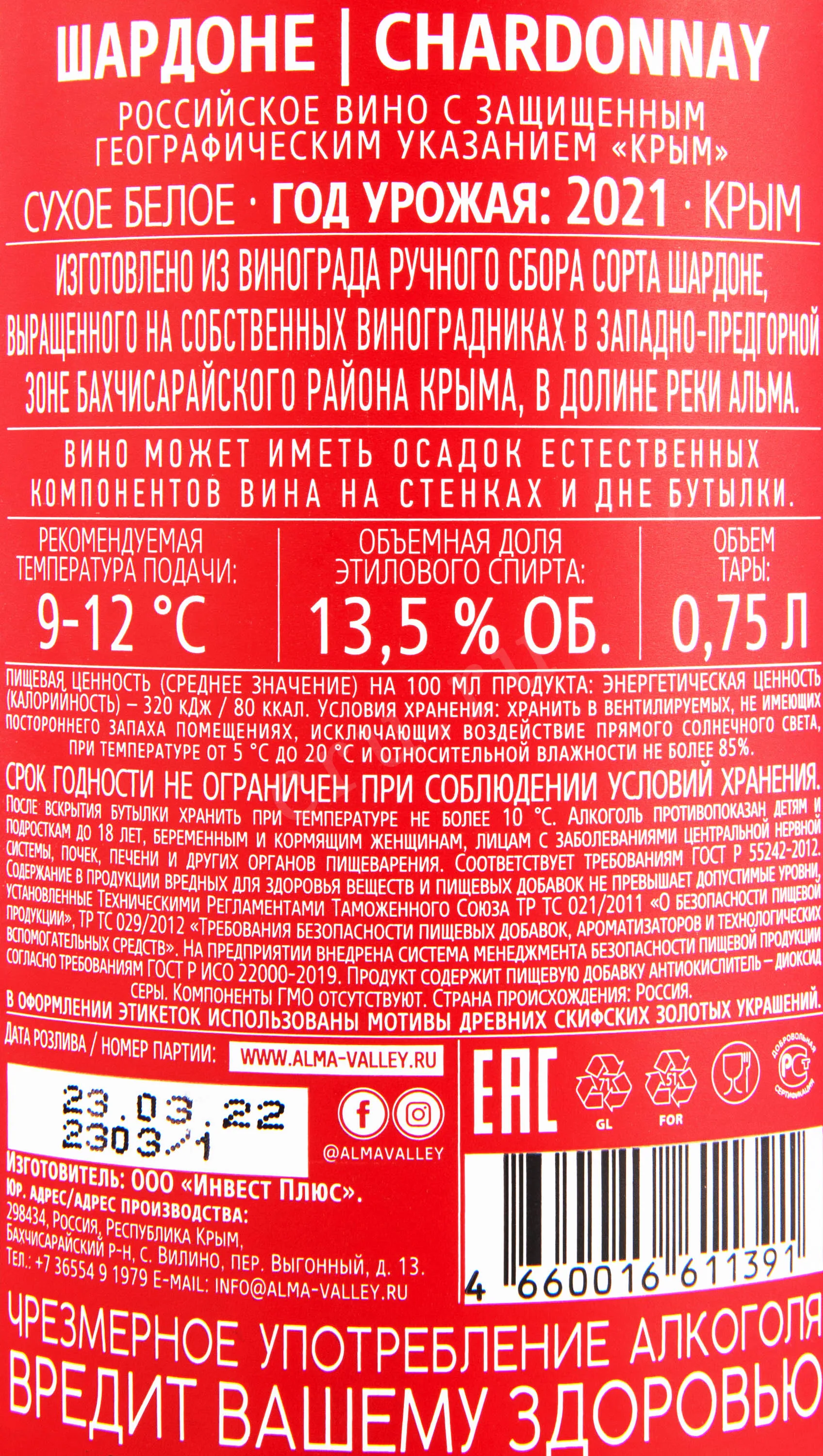 Вино Алма Вэлли Шардоне 0,75 л — белое сухое спиртное от крымской винодельни «Альма Вэлли», расположенной в живописной долине Альма, где сочетаются мягкий морской климат и известняково-глинистые почвы, придающие ягодам особую минеральность и свежесть. Виноград сорта Шардоне собирается вручную в ранние утренние часы, чтобы сохранить естественную кислотность и богатство ароматов. Брожение проходит в стальных емкостях при контролируемой температуре, а последующая выдержка на тонком дрожжевом осадке обеспечивает напитку бархатную структуру и гармоничное развитие вкуса. Алма Вэлли Шардоне раскрывается в бокале мягким светло-золотистым цветом и сложным букетом, в котором угадываются специи, сушёные ягоды и спелые фрукты. Это напиток, отражающий природную щедрость Крыма и мастерство виноделов, создающих вино с характером и глубиной.