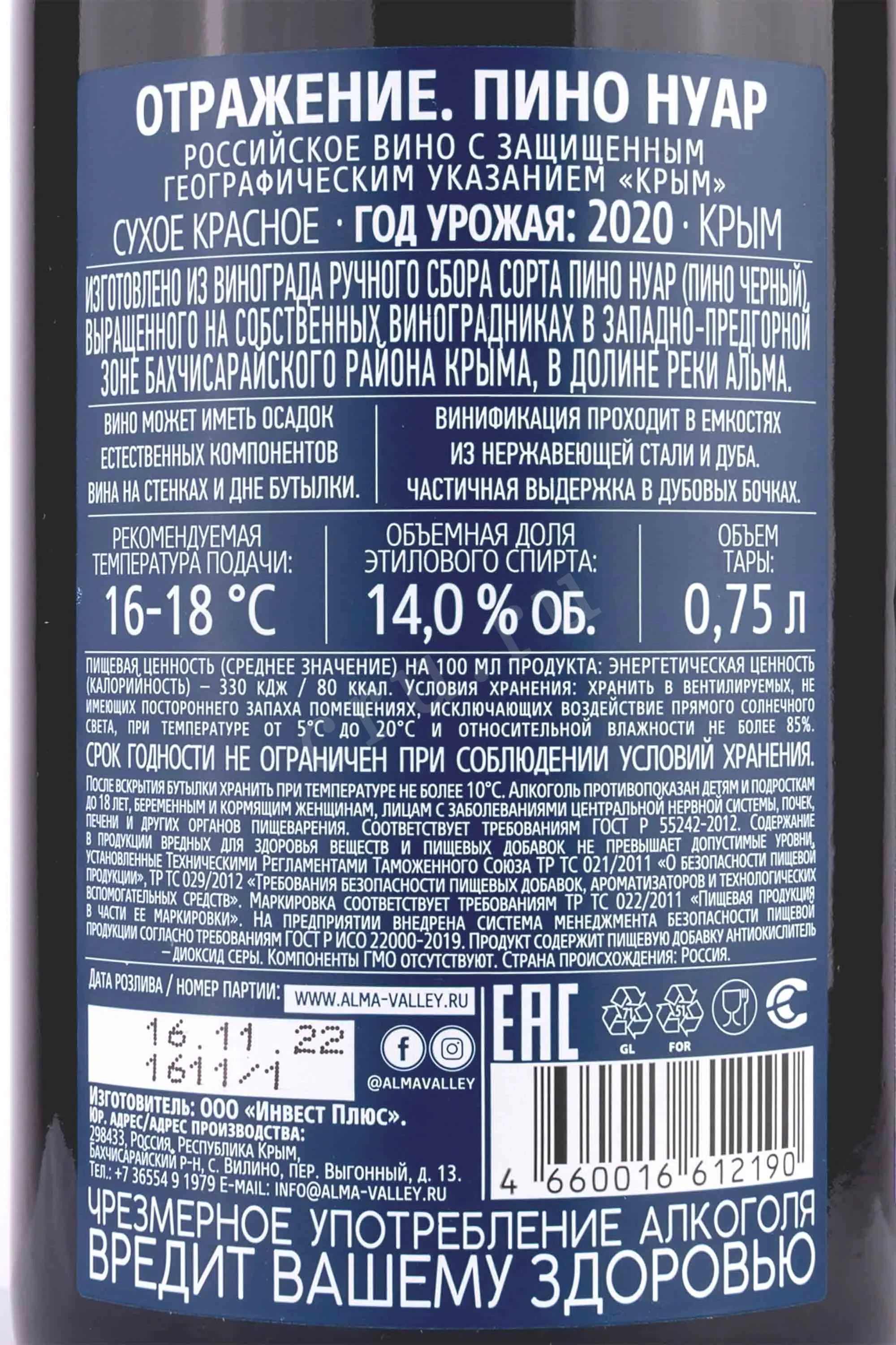 Вино Альма Вэлли Отражение Пино Нуар 0,75 л отражает характер южных склонов долины реки Альма. Здесь мягкий климат, морские бризы и солнечные дни создают идеальные условия для выращивания сорта Пино Нуар, требовательного к балансу тепла и влаги. Урожай собирают исключительно вручную, чтобы сохранить целостность ягод и чистоту аромата. После ферментации напиток выдерживается не менее шести месяцев в дубовых бочках, что придаёт ему благородную структуру и мягкие танинные ноты. Напиток воплощает гармонию природной энергии Крыма и мастерства виноделов «Альма Вэлли», создавая впечатление тонкого, но глубокого вкуса, где каждый аккорд уравновешен и выразителен.