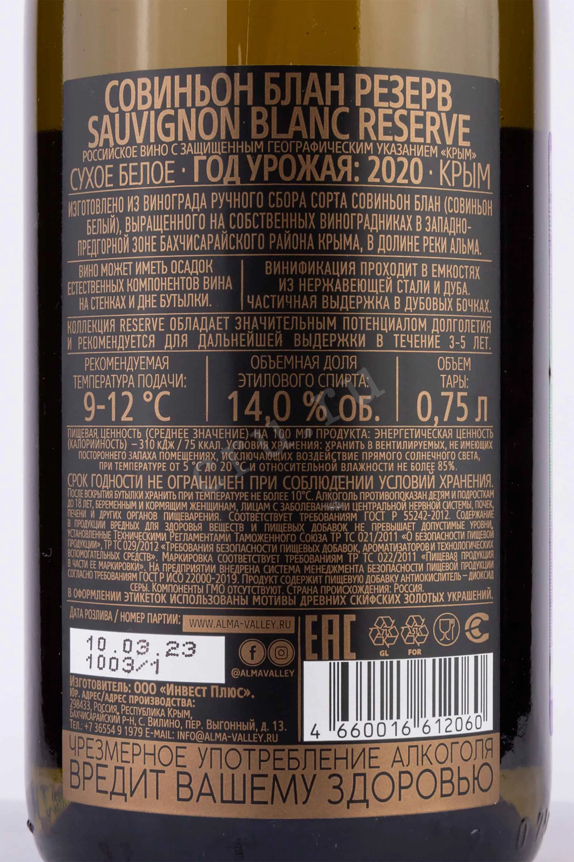 Вино Альма Вэлли Совиньон Блан Резерв 0,75 л — выражение терруара долины реки Альма, где виноградники «Альма Вэлли» раскинулись на солнечных склонах Бахчисарайского региона. Здесь уникальное сочетание известняковых почв, мягкого морского климата и чистого горного воздуха формирует неповторимый характер ягод. Урожай собирают вручную, чтобы сохранить тонкую свежесть и природную ароматику сорта. После ферментации напиток выдерживается не менее трёх месяцев на осадке в стали и шесть месяцев в дубовой бочке, что придаёт ему сложную структуру, благородные тона и гармоничную глубину. Результат — утончённый напиток с мягким телом и выразительным ароматическим профилем, в котором отражается философия «Альма Вэлли» — создавать вина с характером.