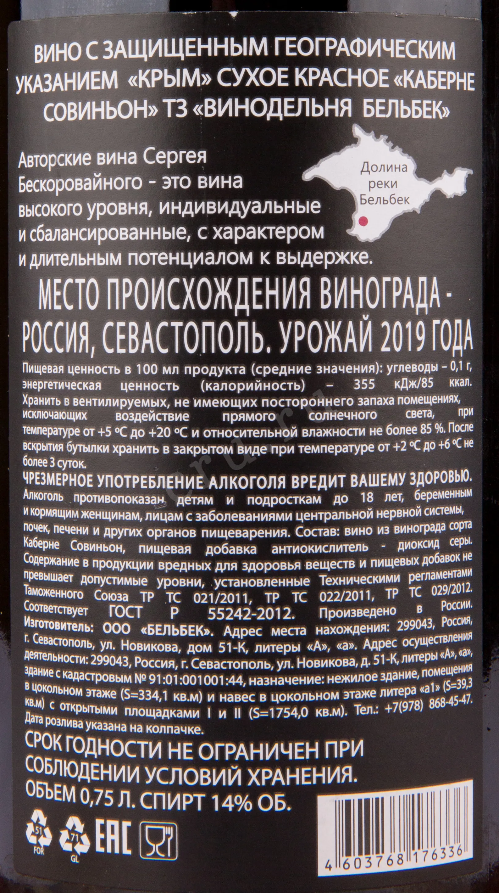 Бельбек Каберне Совиньон 2019 0.75 л купить - Российское вино Belbek Cabernet Sauvignon цена в магазине КРЮ ПРОФИ г. Москва, ул. Профсоюзная, д. 16/10 10:00-22:00 Ежедневно +7 (495) 920-20-02 info@cru.ru