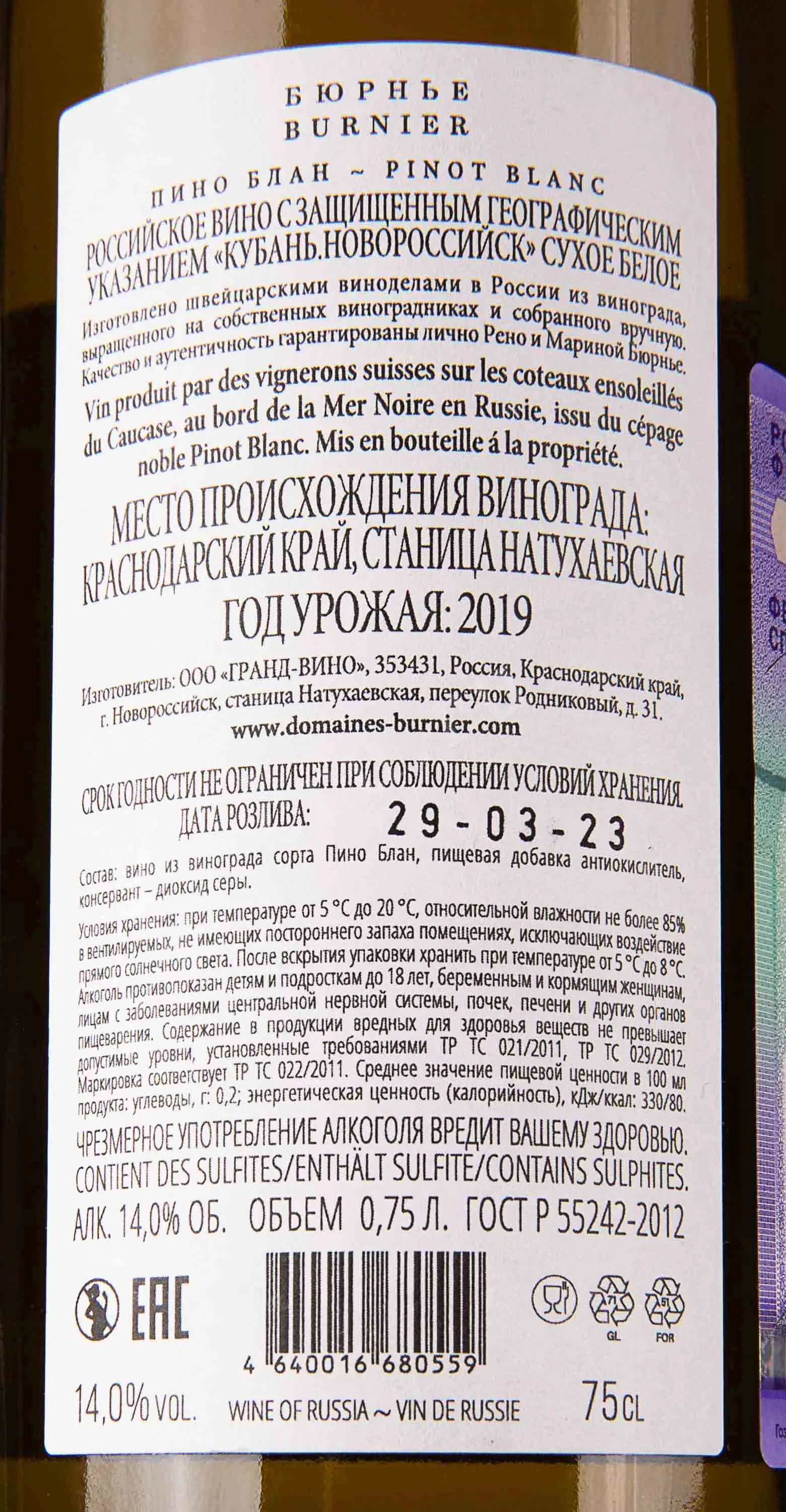 Вино Бюрне Пино Блан 0,75 л создано в сердце Новороссийска, где виноградники винодельни Бюрнье тянутся вдоль тёплого побережья Чёрного моря. Уникальный микроклимат Краснодарского края, насыщенные минералами известняковые почвы и бережный сбор урожая придают напитку особую свежесть и выразительность. Производство ведётся по методу «Сюр Ли» с выдержкой в нержавеющей стали не менее 12 месяцев — техника, позволяющая вину приобрести округлость и сложность вкуса за счёт выдержки на тонком дрожжевом осадке. Благодаря этому подходу рождается гармоничный напиток, в котором изящество французского стиля соединено с характером черноморского терруара.
