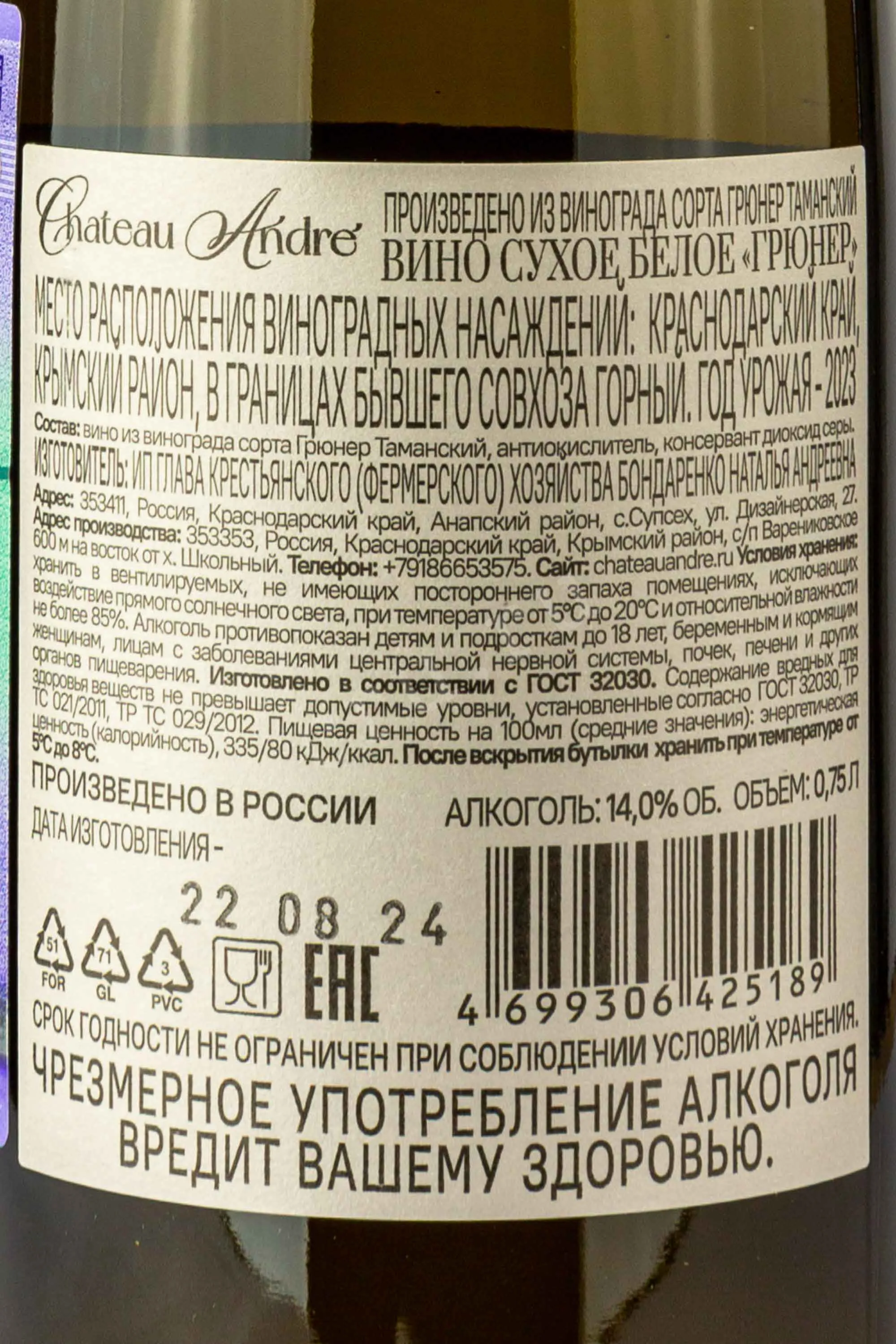 Шато Андре Грюнер Сухое Белое 2024 0.75 л купить - Российское вино Chateau Andre Gruner Dry White цена в магазине КРЮ ПРОФИг. Москва, ул. Профсоюзная, д. 16/1010:00-22:00 Ежедневно+7 (495) 920-20-02info@cru.ru