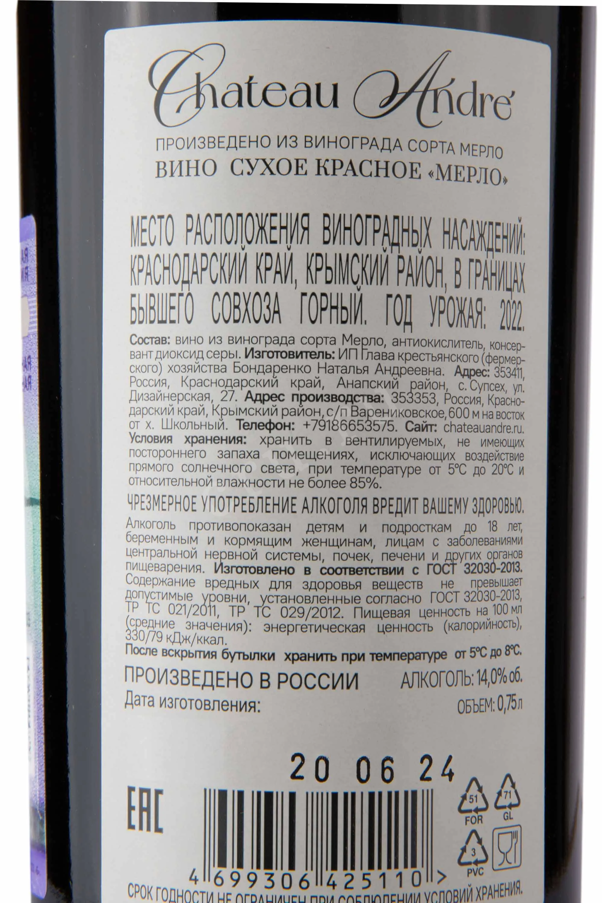 Вино Шато Андре Мерло 0,75 л создано винной компанией «Шато Андре» под руководством Н. Бондаренко. Красный сухой напиток выполнен в стиле Прованс и воплощает гармонию традиций французского и немецкого виноделия. Виноградники расположены в уникальном месте, где мягкий климат и морские бризы Азовского и Чёрного морей формируют сбалансированный терруар. Здесь сочетаются известковые почвы, умеренное солнце и достаточная влажность, что позволяет ягодам сорта Мерло развивать мягкую кислотность и глубокий аромат. Производство ведётся с особым вниманием к температурным режимам и срокам выдержки, что сохраняет природную свежесть плодов и формирует элегантную структуру напитка.