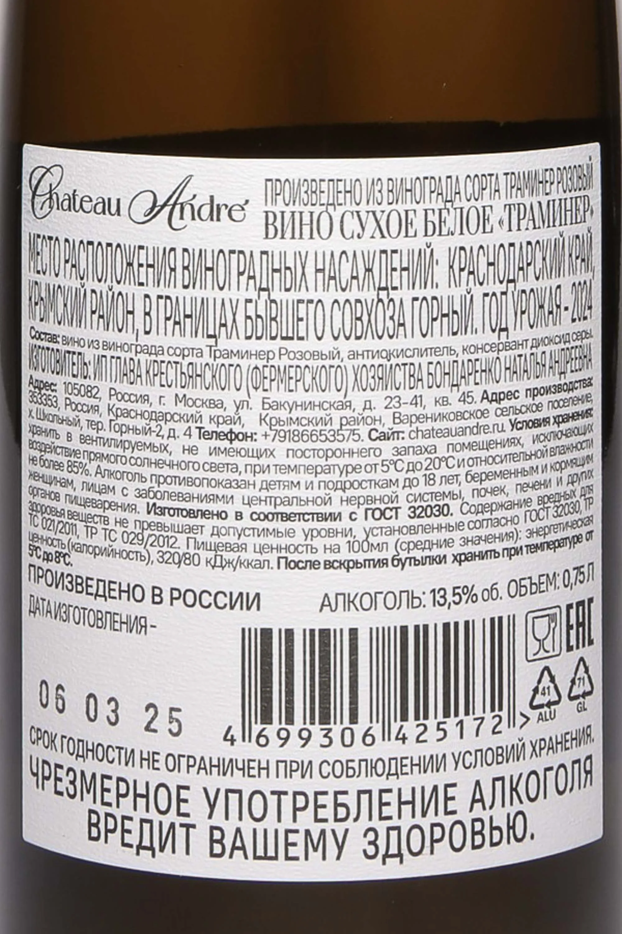 Вино Шато Андре Траминер 2024 0.75 л — утончённый розовый напиток, созданный на солнечных склонах Кубани, где виноградники впитывают тепло южного солнца и прохладу морских бризов. Винодельня Château André сочетает современные технологии и бережное отношение к традициям, чтобы раскрыть характер местного терруара. Урожай 2024 года собирался вручную в утренние часы, когда ягоды сохраняют свежесть и естественную кислотность. После мягкого прессования сусло проходило холодную мацерацию, что позволило добиться нежного розового оттенка и выразительного фруктового аромата. Глинисто-известняковые почвы и умеренный климат региона придают напитку гармоничное сочетание легкости и глубины вкуса, а уникальный кубанский терруар наполняет его южным темпераментом и природной энергией.
