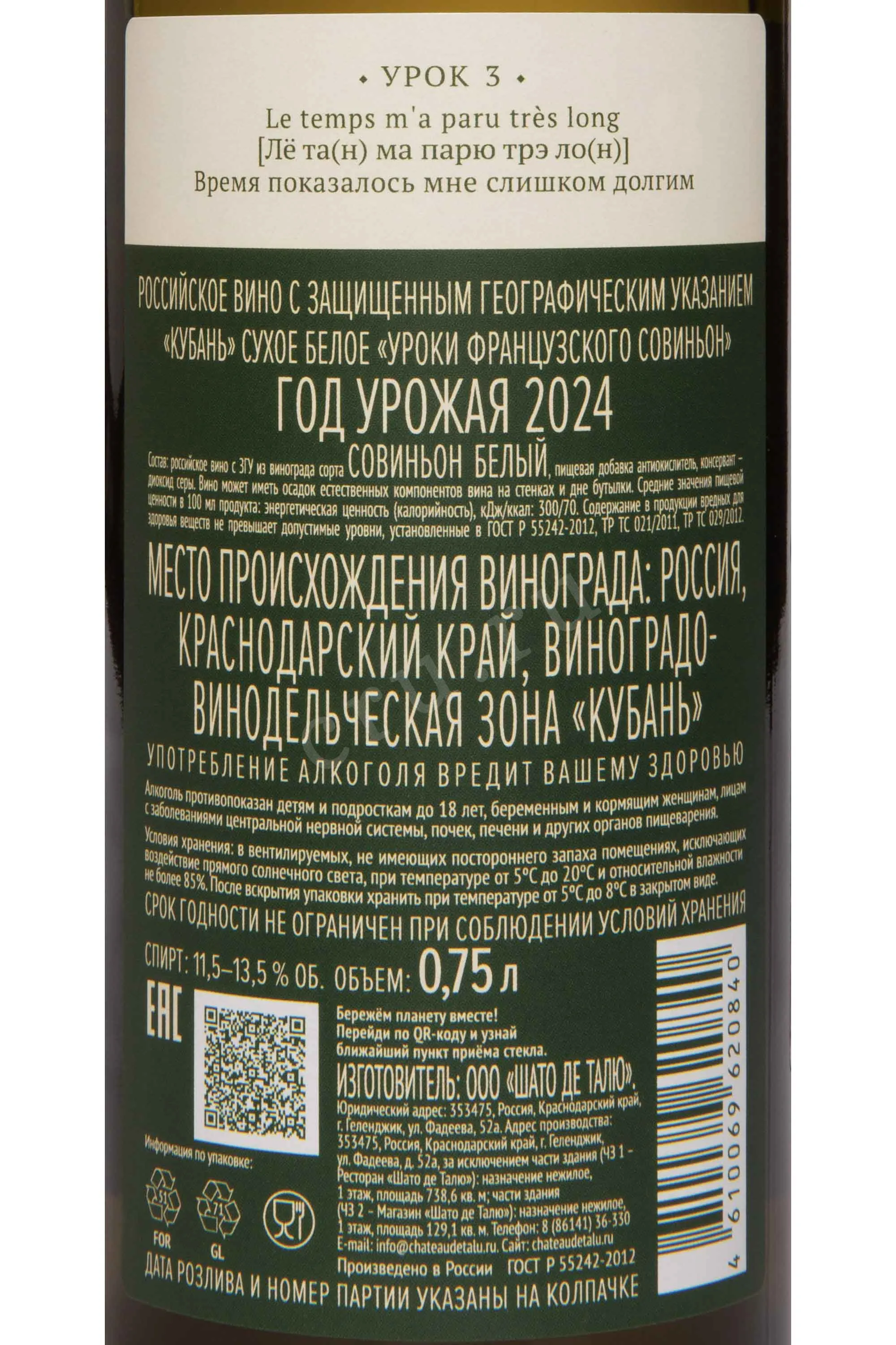 Вино Шато де Талю Уроки Французского Совиньон 2024 0.75 л было создано по традиционным французским методикам с применением холодной ферментации, что позволило максимально раскрыть сортовые особенности. Урожай собирали вручную на виноградниках, расположенных на склонах с известняковыми почвами, обогащёнными морскими отложениями, в уникальном терруаре крымского побережья. Благодаря умеренному климату с мягкими зимами и продолжительным солнечным периодом ягоды приобрели идеальный баланс кислотности и сахаров, обеспечив высокое качество напитка.