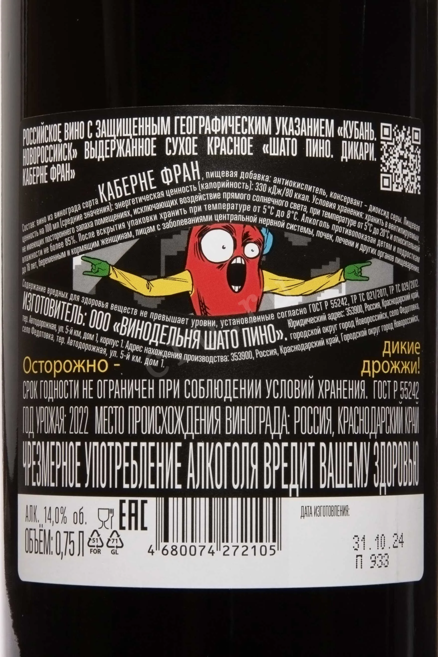 Вино Шато Пино Каберне Фран Дикари 0,75 л создано винодельней Шато Пино из урожая, выращенного на солнечных склонах Кубань неподалёку от побережья Чёрного моря. Здесь сочетание тёплого климата, вентилируемых склонов и известняковых почв формирует плотность и выразительность Каберне Фран. Технология производства предполагает бережную сортировку ягод, ферментацию при контролируемой температуре и выдержку, позволяющую подчеркнуть природную фруктовость сорта. Такой подход делает напиток насыщенным, но элегантным, с гармоничным балансом пряностей и тёмных ягод.