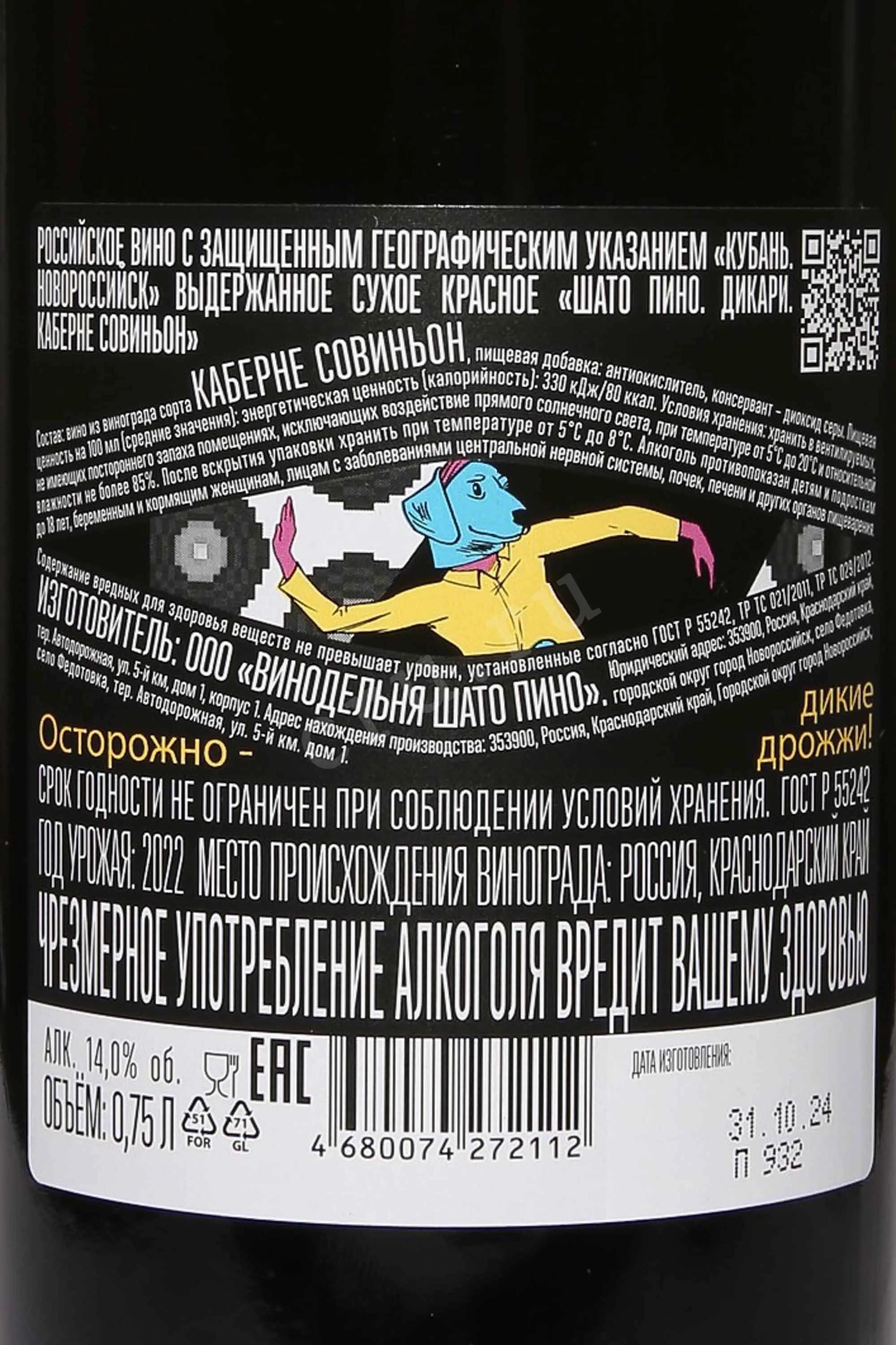 Красное сухое вино Шато Пино Дикари Каберне Совиньон 2022 года 0,75 л создано в традициях кубанского виноделия. Виноград выращен в терруаре микрозоны Мысхако, которая славится мягким климатом и минеральными почвами. Урожай 2022 года оказался удачным: солнечные дни и прохладные ночи позволили ягодам накопить богатый ароматический профиль при сохранении свежести. Вино изготовлено на гравитационной винодельне Шато Пино, где процесс ферментации проходил на диких дрожжах вместе с кожицей и гребнями. После завершения брожения напиток выдерживался девять месяцев в новых барриках из французского дуба. Такая технология придала вину глубину, благородные тона и мягкую структуру. Уникальность выражается в сочетании локального терруара и традиционных французских методов.