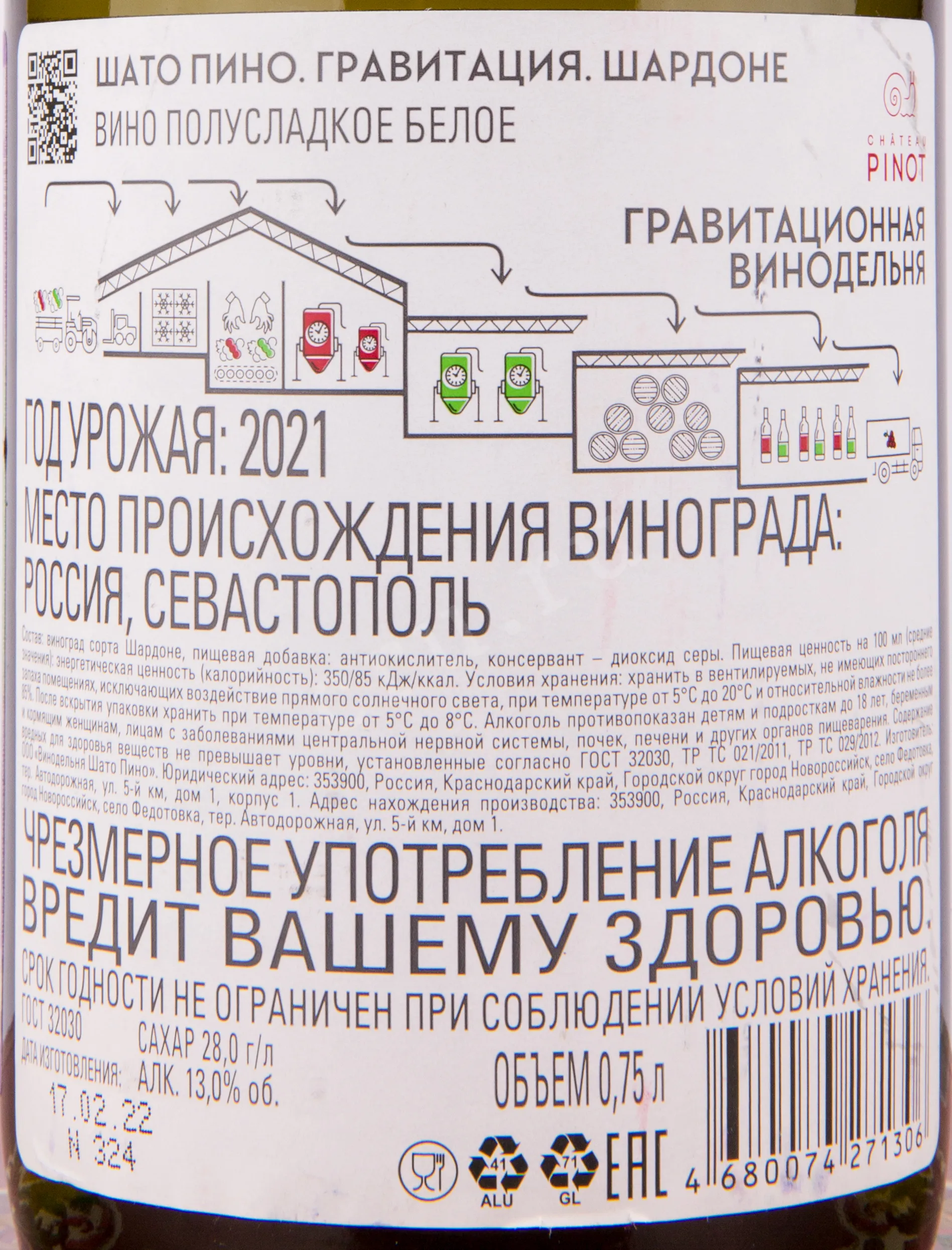 Вино Шато Пино Гравитация Шардоне 0,75 л создано с особым вниманием к терруару и технологии: ягоды собирались на тщательно подобранных склонах, где солнце равномерно прогревает виноградники. Производственный процесс строился по принципу гравитационной винодельни: сырьё перемещалось внутри комплекса без перекачивания, что сохраняло натуральные ароматы и тонкую текстуру вина. Винодельня Шато Пино, оснащённая современными прессами и бочками из французского дуба, обеспечила мягкость и глубину вкуса, подчеркивая свежесть и утонченность сорта Шардоне.