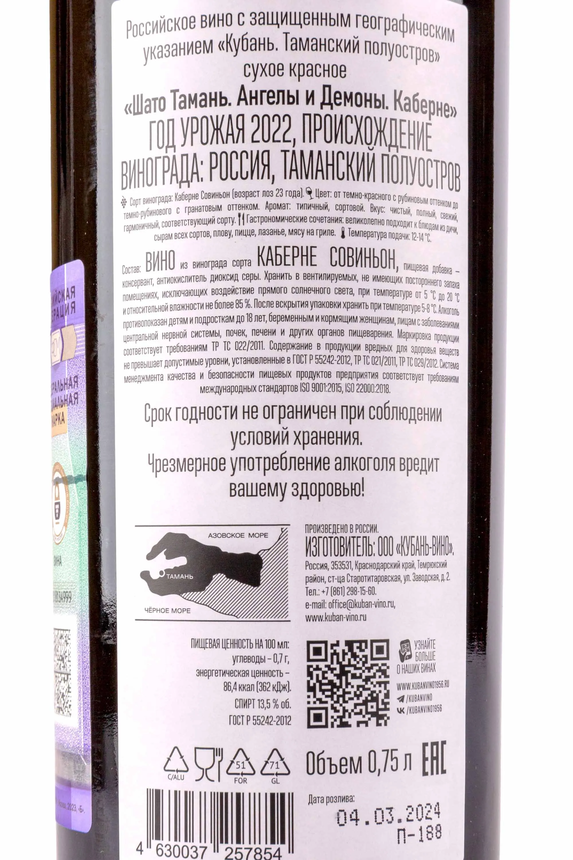 Вино Шато Тамань Ангелы и Демоны 0,75 л создано в хозяйстве Шато Тамань на Таманском полуострове, где морские ветра и солнце формируют выразительный характер ягод. Для напитка используется виноград с участков компании, раскинувшиеся более чем на 12 тыс. гектаров. Терруар сочетает песчано-ракушечные почвы и мягкий климат Кубани, что усиливает плотность, ароматическую насыщенность и природный баланс сырья. Технология производства опирается на щадящую ферментацию с контролем температуры и выдержку, позволяющую сохранить сортовую глубину и подчеркнуть темную, почти рубиновую гамму напитка.