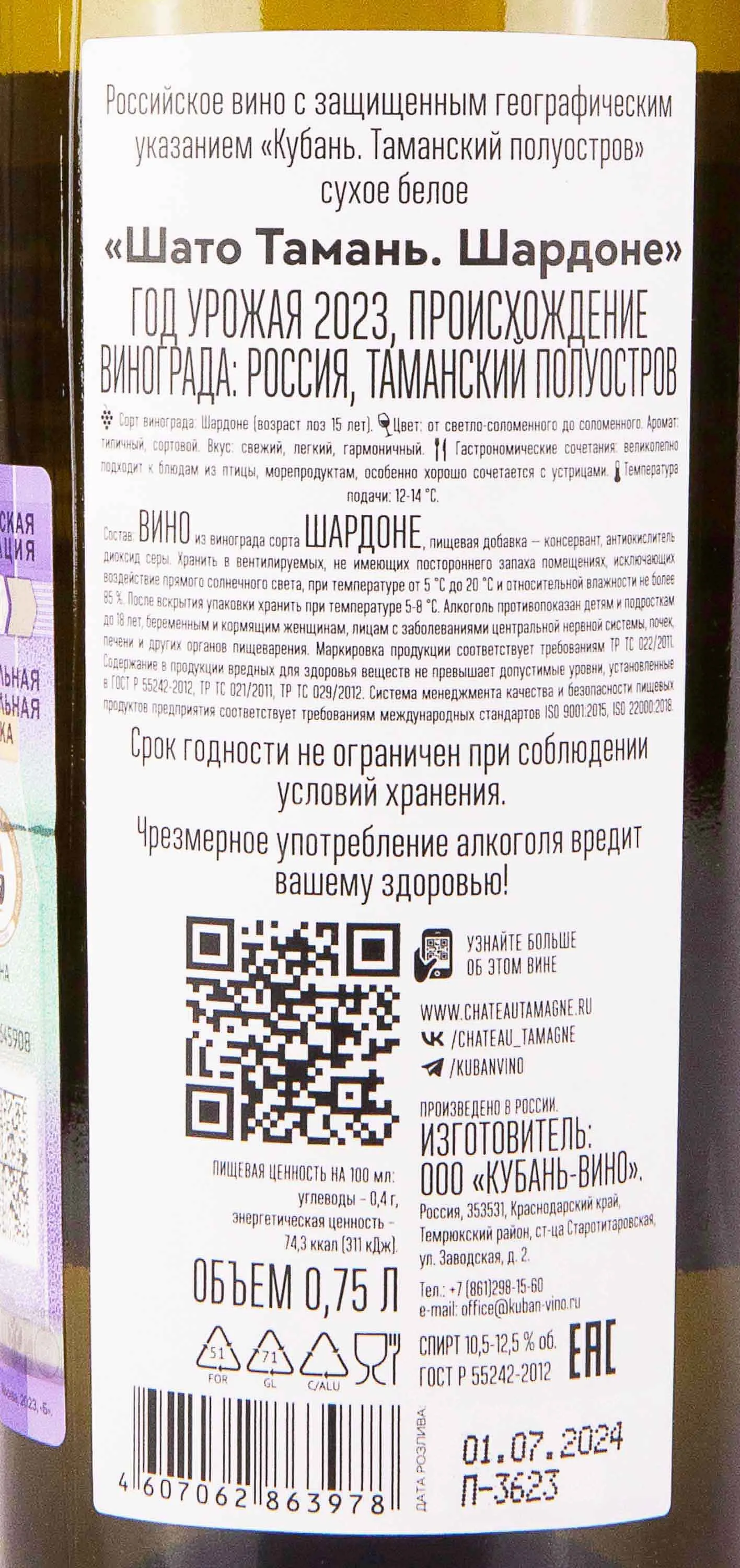 Вино Белое сухое Шардоне Шато Тамань 0,75 л создаётся на основе урожая, собранного в прибрежной зоне Таманского полуострова, где песчано-ракушечные почвы и тёплый морской климат формируют характер будущего напитка. Производитель — Шато Тамань — использует сочетание мягкого прессования и ферментации при контролируемой температуре, чтобы подчеркнуть природную чистоту сорта Шардоне. Выдержка на дрожжевом осадке придаёт напитку структуру и глубину, а солнечный терруар Кубани обеспечивает фруктовую основу с аккуратной минеральной линией.