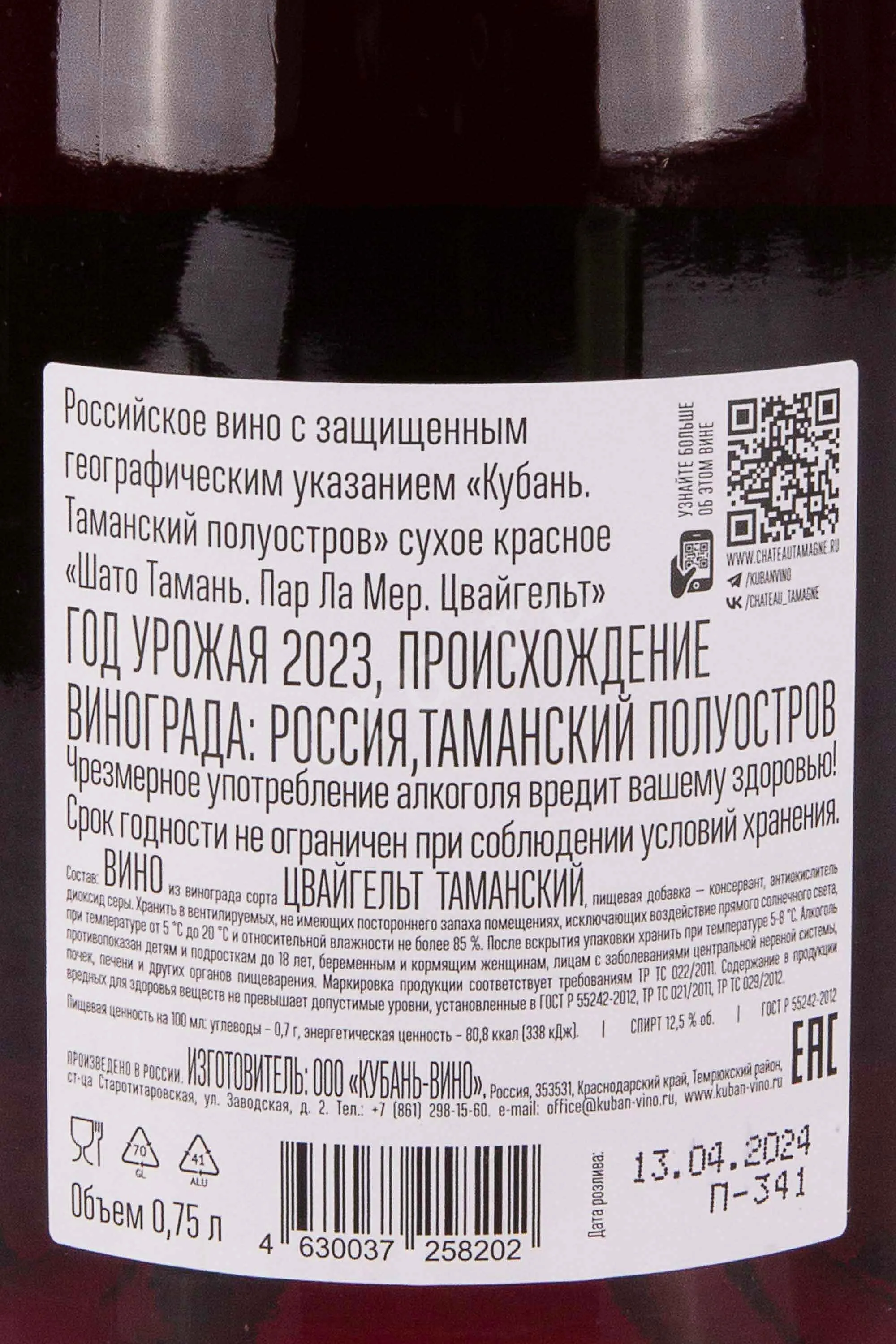 Вино Шато Тамань Пар ла Мер Цвайгельт 0,75 л создано на мощностях винодельни Шато Тамань, чьи виноградники раскинулись на Таманском полуострове между Азовским и Чёрным морями. Для производства применяется сорт Цвайгельт Таманский, сформировавший плотную кожицу и выразительную ароматическую палитру благодаря минеральным почвам, периодическим морским бризам и высокой инсоляции. Мягкая ферментация при контролируемой температуре и щадящая экстракция позволяют сохранить чистый фруктовый профиль, а короткая выдержка в нейтральных ёмкостях подчёркивает природную свежесть и сочность ягод.