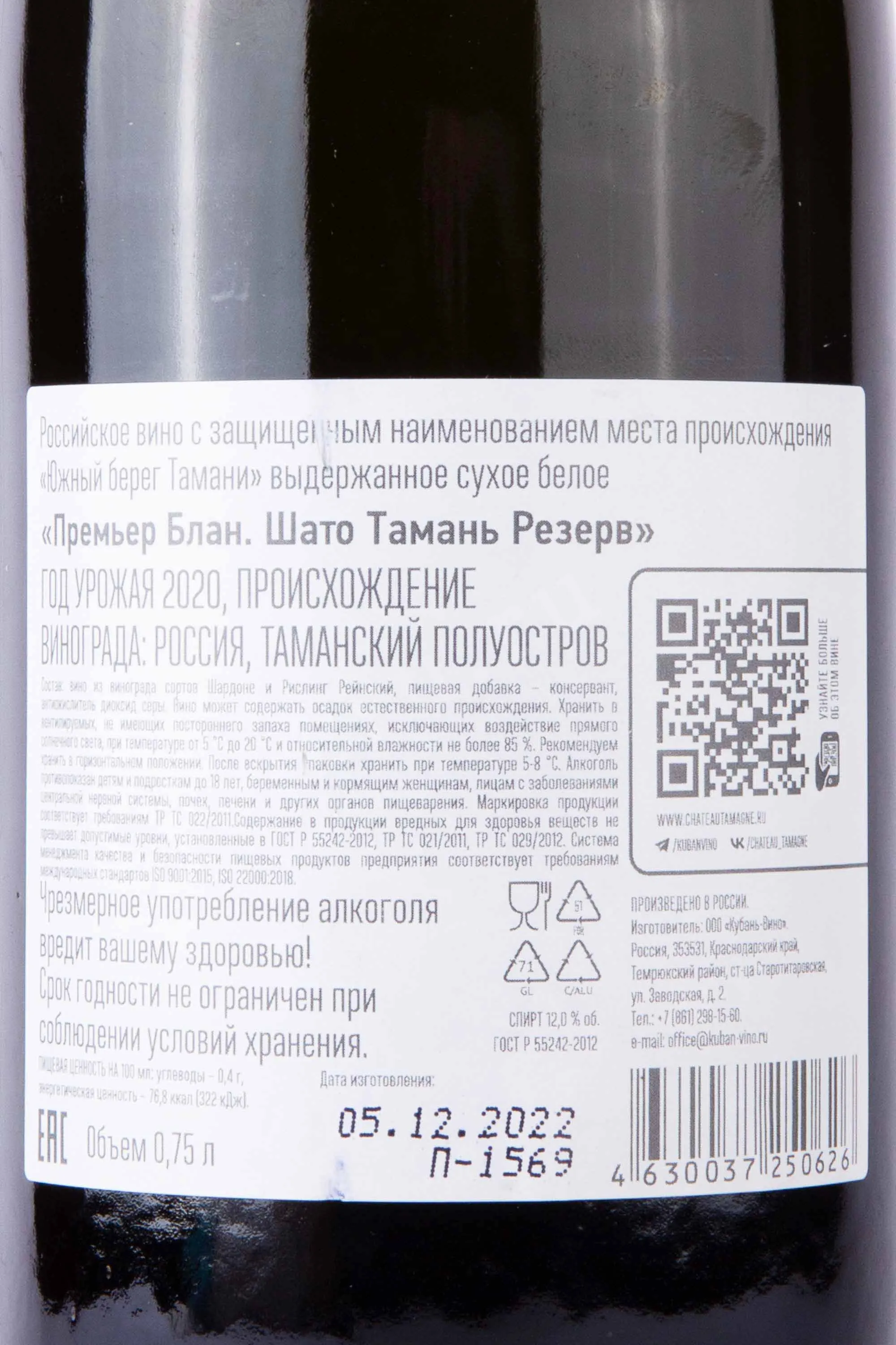 Вино Шато Тамань Резерв Премьер Блан 0,75 л создано на базе собственного виноградарского хозяйства кубанской винодельни, расположенной в благоприятной зоне Таманского полуострова. Мягкий морской климат, обилие солнечных дней и известково-чернозёмные почвы формируют выразительный терруар, способствующий медленному и равномерному созреванию ягод. Для купажа используют отборный виноград сортов Рислинг и Шардоне, собранный при оптимальной фенольной зрелости. Сусло проходит деликатное прессование и контролируемую ферментацию при пониженных температурах, что позволяет сохранить сортовую свежесть и тонкость ароматики. Часть партии выдерживается на тонком дрожжевом осадке, придавая текстуре округлость и глубину. В результате получается гармоничное белое сухое с чистым, светло-соломенным оттенком и едва заметным зеленоватым отблеском.