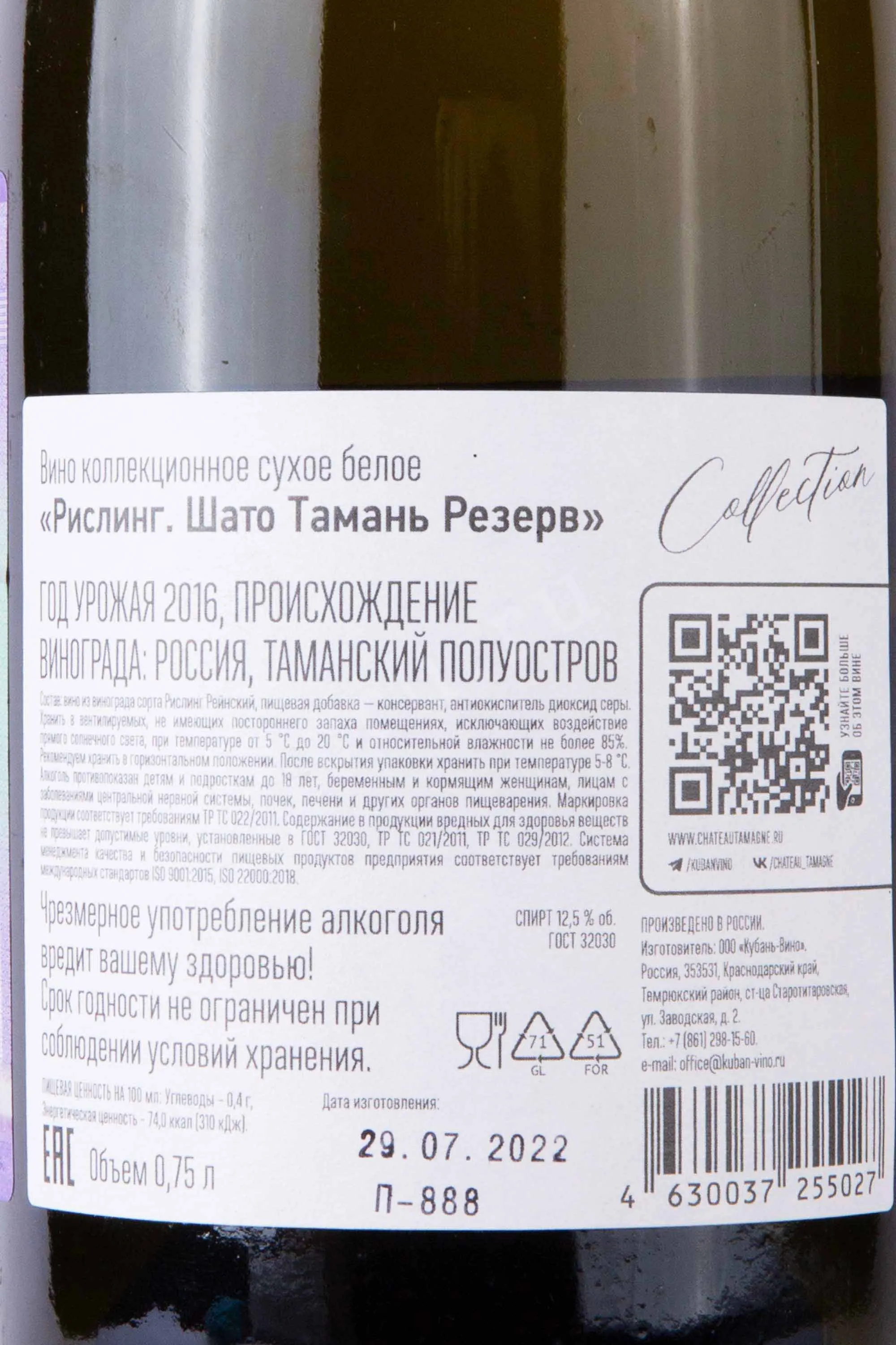 Шато Тамань Резерв Рислинг 2016 0,75 л создано из урожая, собранного на Таманском полуострове, где мягкий морской климат Черного и Азовского морей формировал продолжительный вегетационный период. Лозы возрастом около двух десятилетий выращивают на карбонатных и суглинистых почвах с хорошим дренажем, что обеспечило ягодам яркую кислотность и минеральную выразительность. Урожай 2016 года собрали вручную в фазе оптимальной спелости, после чего сусло ферментировали при контролируемой температуре для сохранения сортовой ароматики. Часть партии выдерживали во французских дубовых бочках, где напиток приобрёл дополнительную глубину, тонкие древесные акценты и гармоничную структуру.