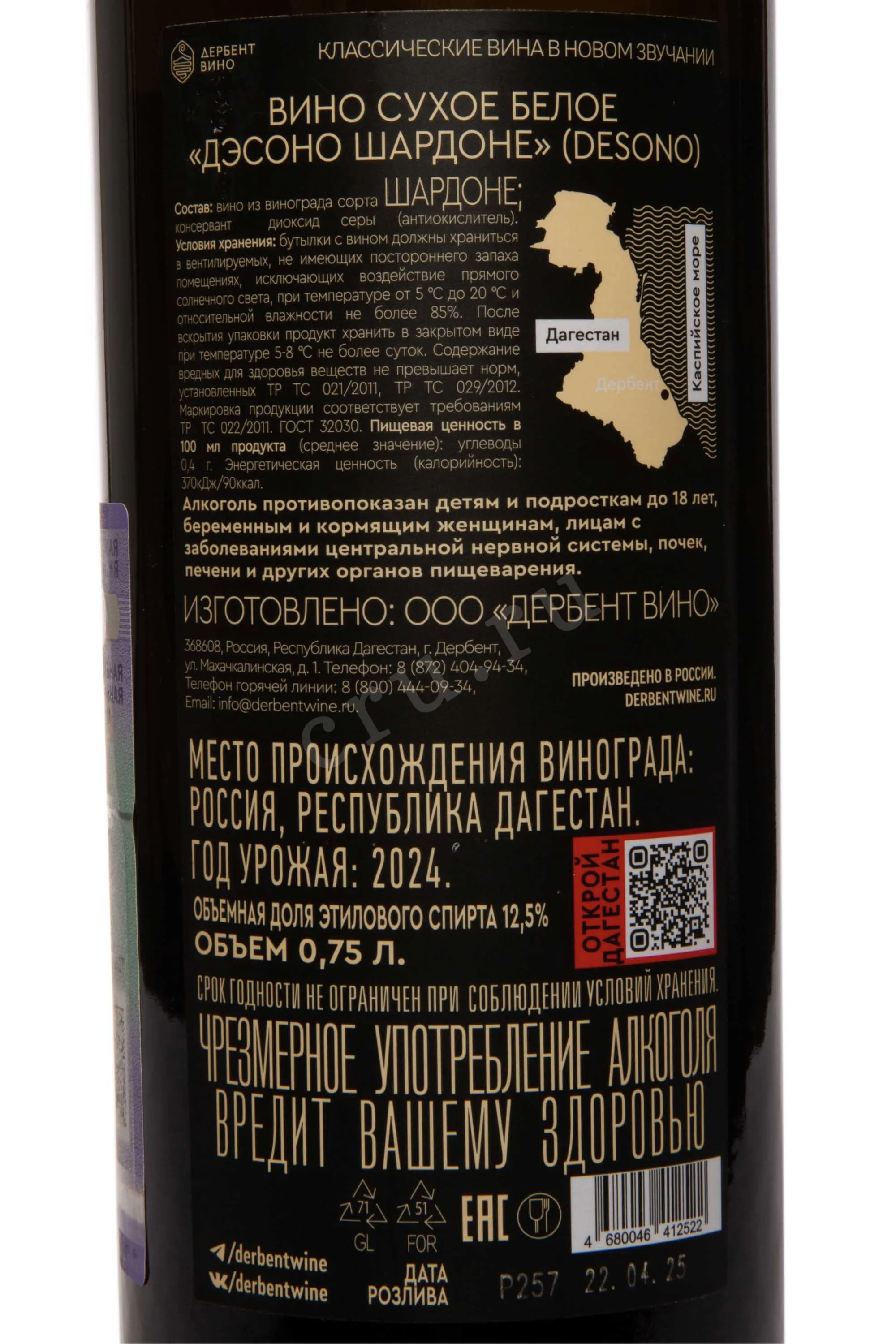 Вино Дэсоно Шардоне 0,75 л. создаётся на южных склонах Дагестана, где виноградники раскинулись вблизи побережья Каспийского моря. Морские бризы смягчают летний зной, а известково-суглинистые почвы придают ягодам выразительную минеральность и чистоту вкуса. Урожай собирают в фазе оптимальной зрелости, чтобы сохранить баланс кислотности и сахаров. Сусло проходит деликатное прессование с последующей ферментацией при контролируемой температуре, что позволяет раскрыть природную свежесть сорта. Часть вина выдерживается на тонком дрожжевом осадке, благодаря чему формируется округлая текстура и мягкие сливочные оттенки. В результате получается гармоничный белый сухой алкоголь с тонкой структурой и продолжительным послевкусием.