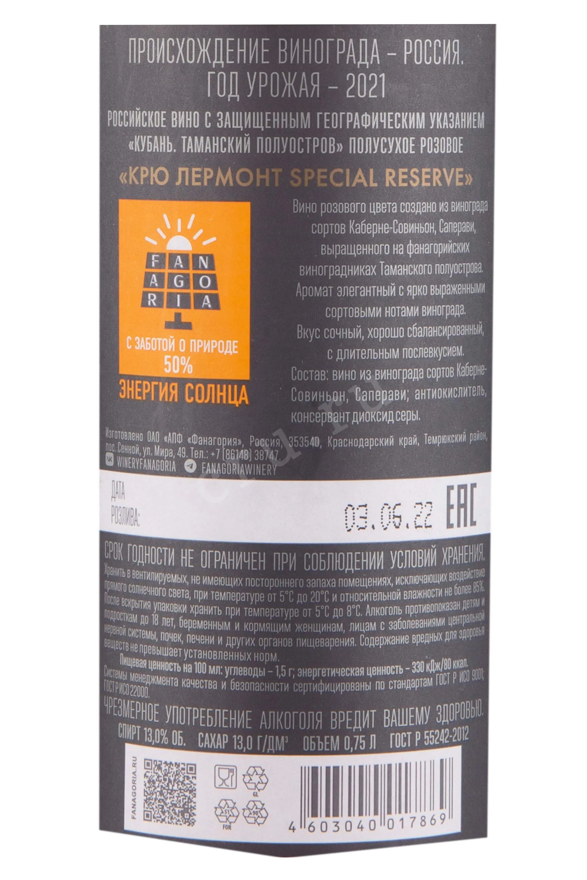 Вино Фанагория Крю Лермонт 2021 0.75 л