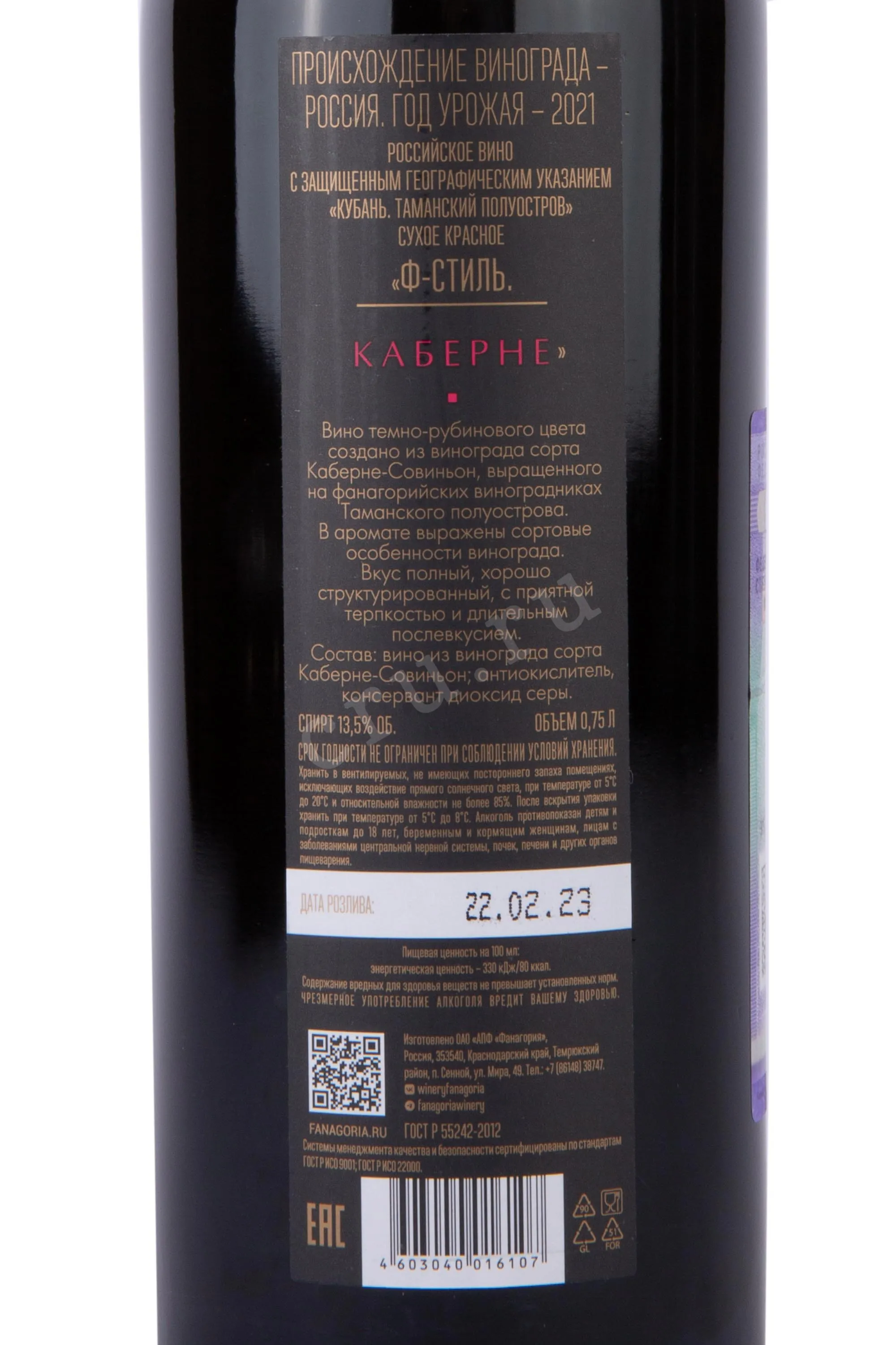 Фанагория Ф-Стиль Каберне 2021 0.75 л купить - Российское вино Fanagoria F-Style Cabernet цена в магазине КРЮ ПРОФИ г. Москва, ул. Профсоюзная, д. 16/10 10:00-22:00 Ежедневно +7 (495) 920-20-02 info@cru.ru