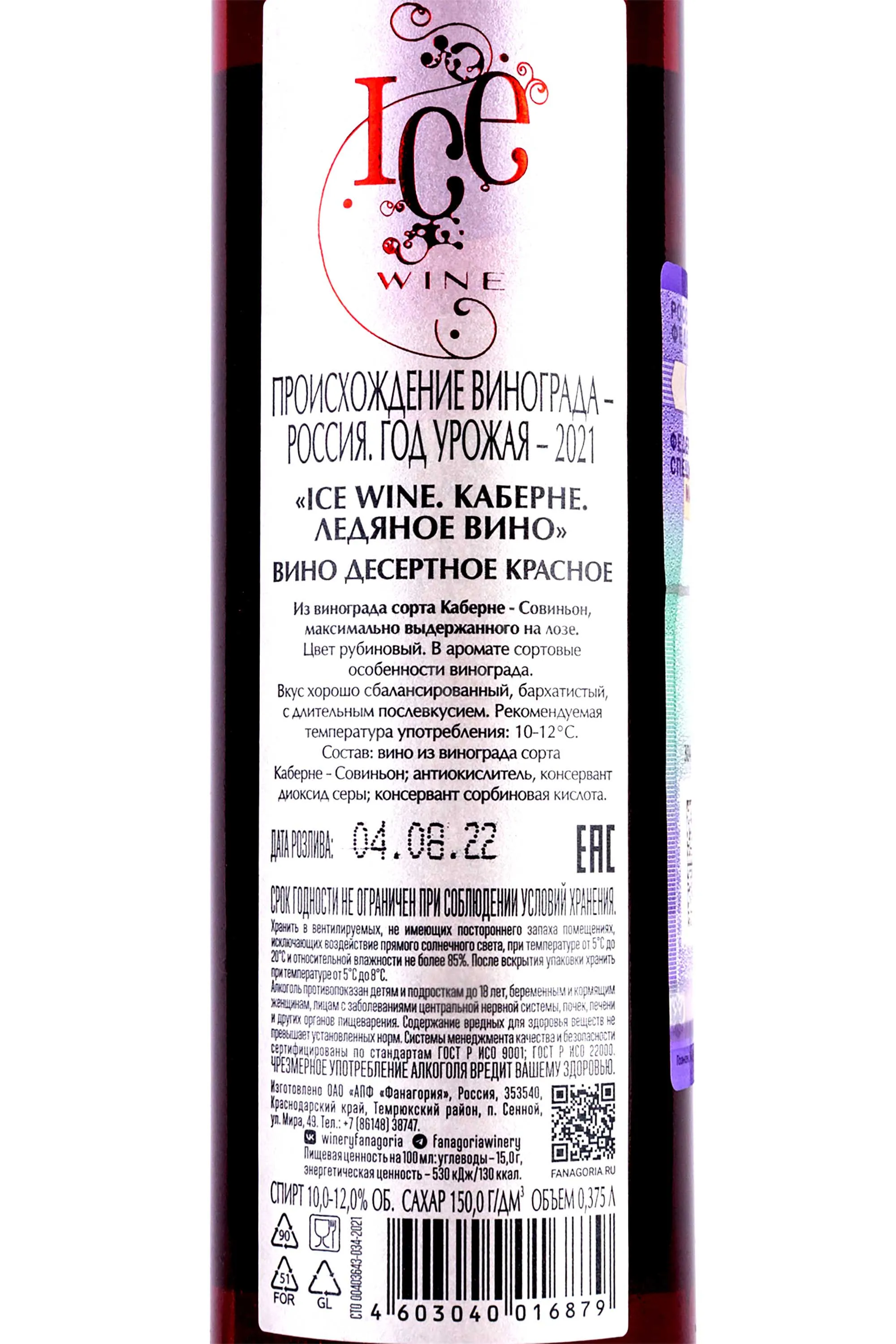 Fanagoria Ice Wine Cabernet in tube 0.375