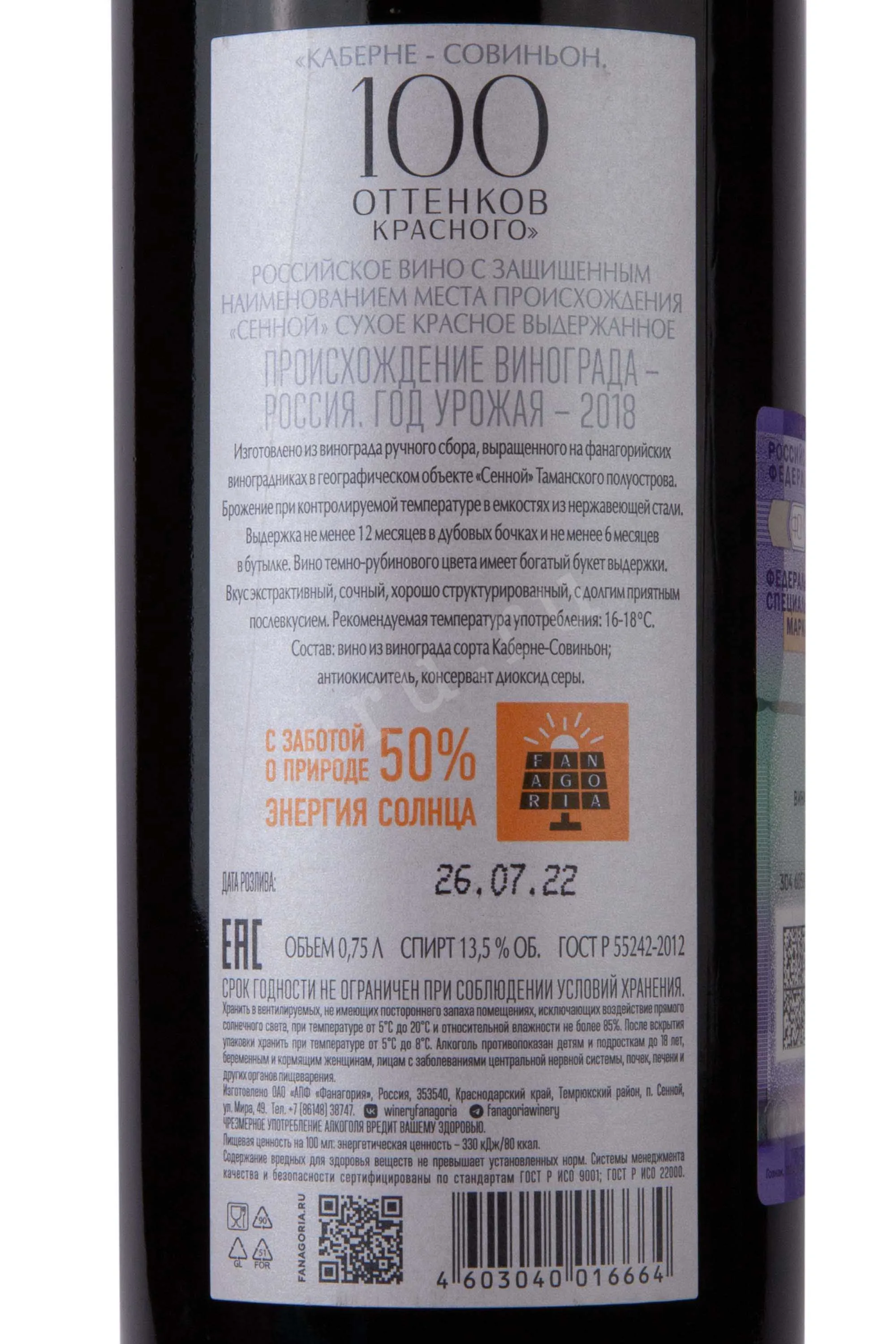 Вино Фанагория 100 Оттенков Красного Каберне Совиньон 2018 0.75 л
