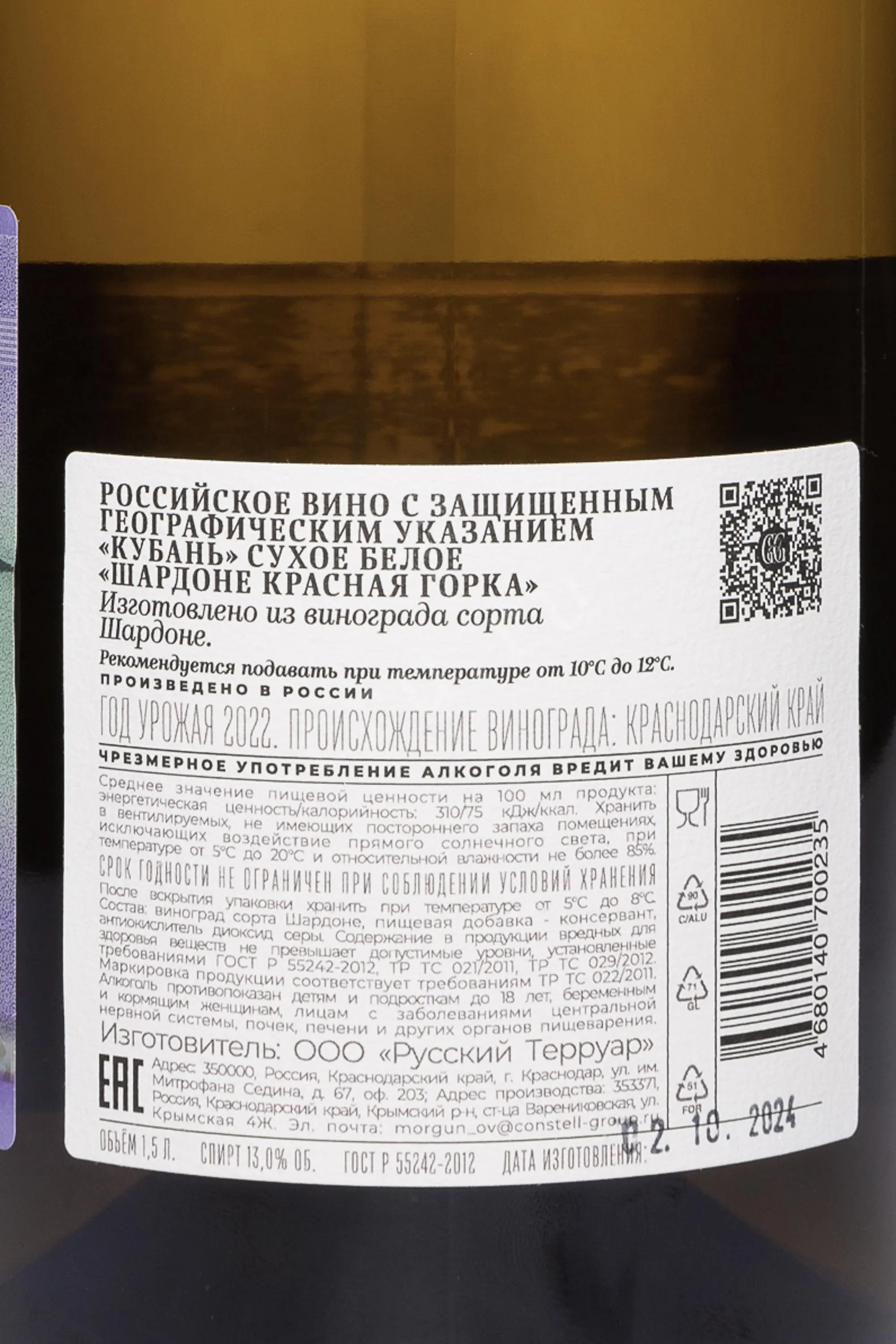 Галицкий и Галицкий Шардоне Красная Горка 2022 1.5 л купить - Российское вино Galitskiy & Galitskiy Krasnaia Gorka Chardonnay цена в магазине КРЮ ПРОФИ г. Москва, ул. Профсоюзная, д. 16/10 10:00-22:00 Ежедневно +7 (495) 920-20-02 info@cru.ru