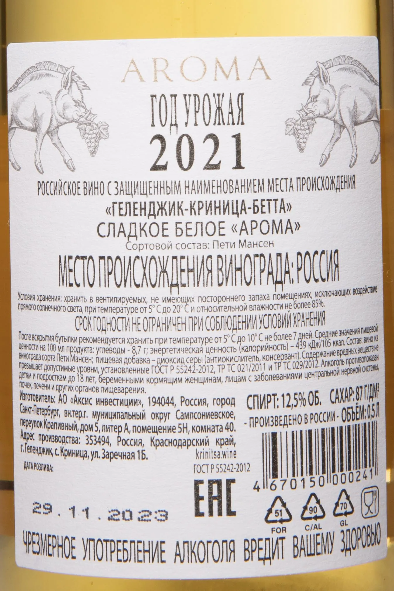 Криница Бетта Арома 2022 0.75 л купить - Российское вино Krinica Betta Aroma цена в магазине КРЮ ПРОФИ г. Москва, ул. Профсоюзная, д. 16/10 10:00-22:00 Ежедневно +7 (495) 920-20-02 info@cru.ru
