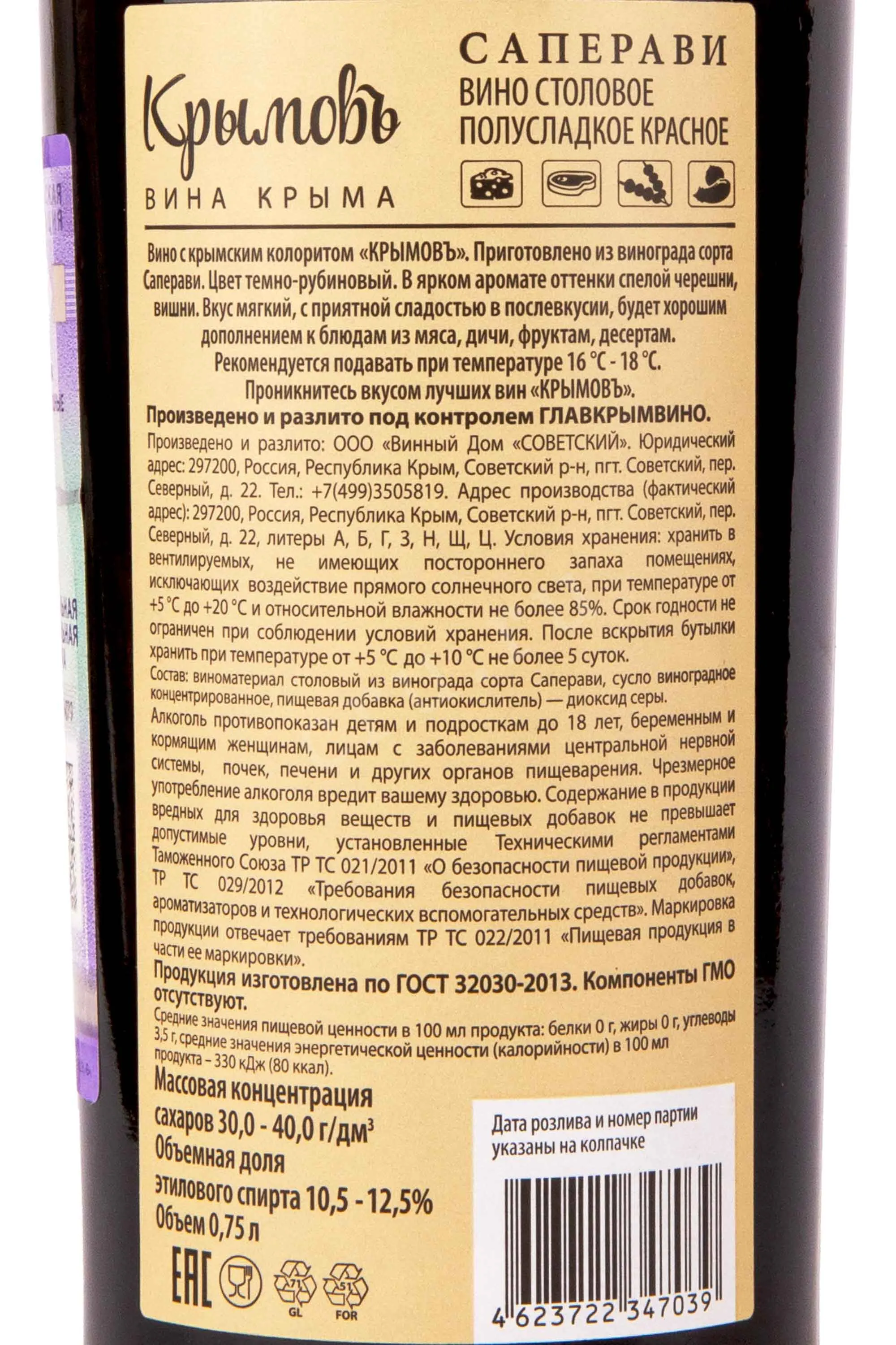 Крымовъ Саперави 0.75 л купить - Российское вино Kryimov Saperavi цена в магазине КРЮ ПРОФИ г. Москва, ул. Профсоюзная, д. 16/10 10:00-22:00 Ежедневно +7 (495) 920-20-02 info@cru.ru