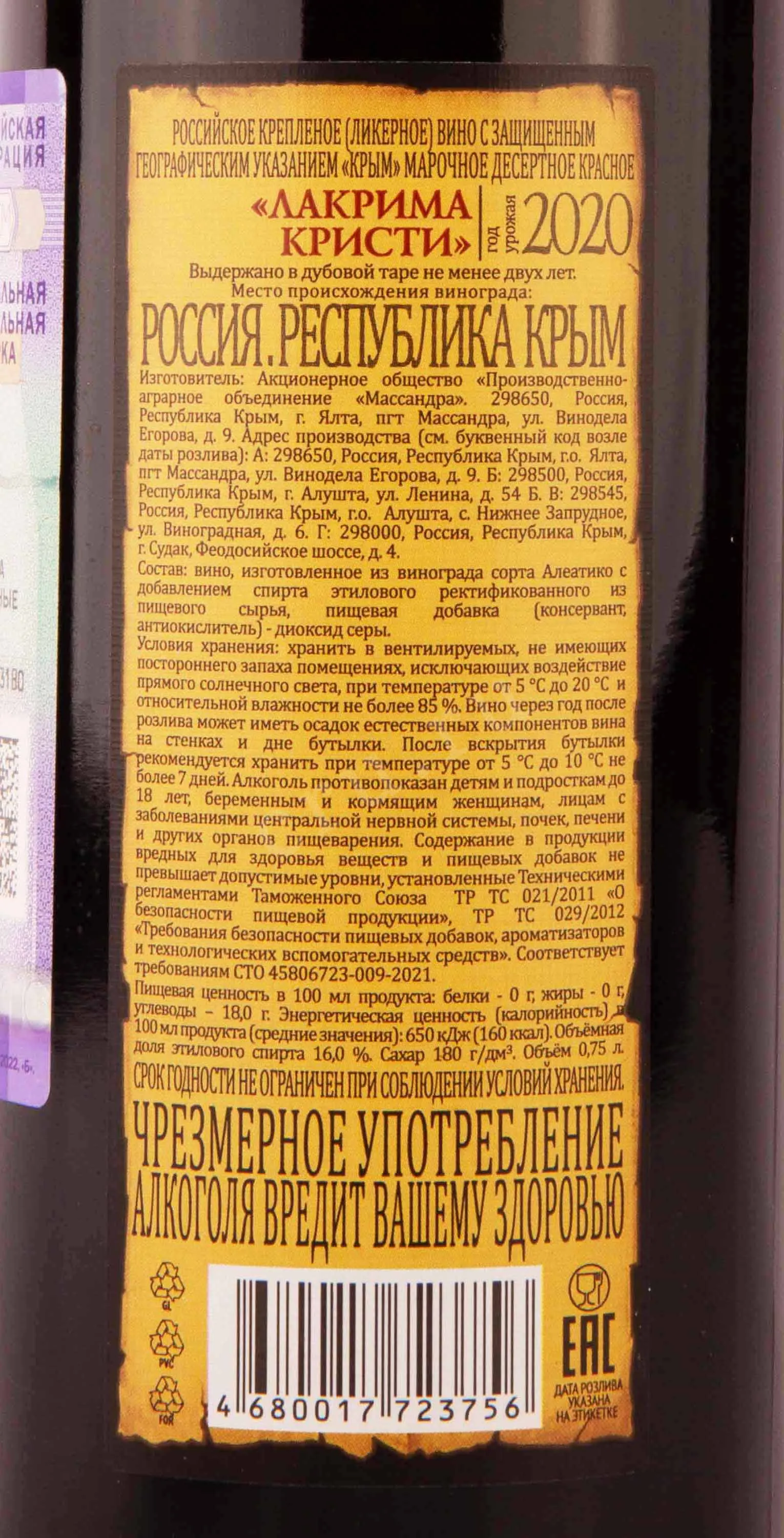 Изготовитель: ФГУП "ПАО "Массандра"