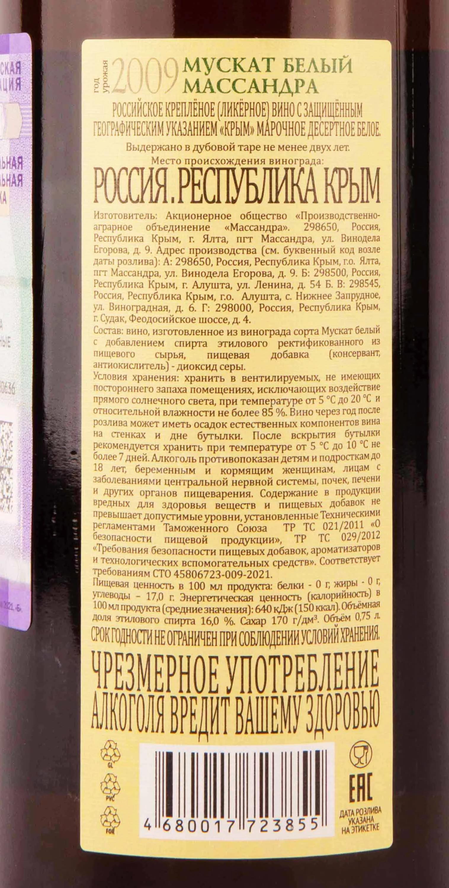 Массандра Мускат Белый 2009 0.75 л купить - Российское вино Massandra Muskat White цена в магазине КРЮ ПРОФИ г. Москва, ул. Профсоюзная, д. 16/10 10:00-22:00 Ежедневно +7 (495) 920-20-02 info@cru.ru