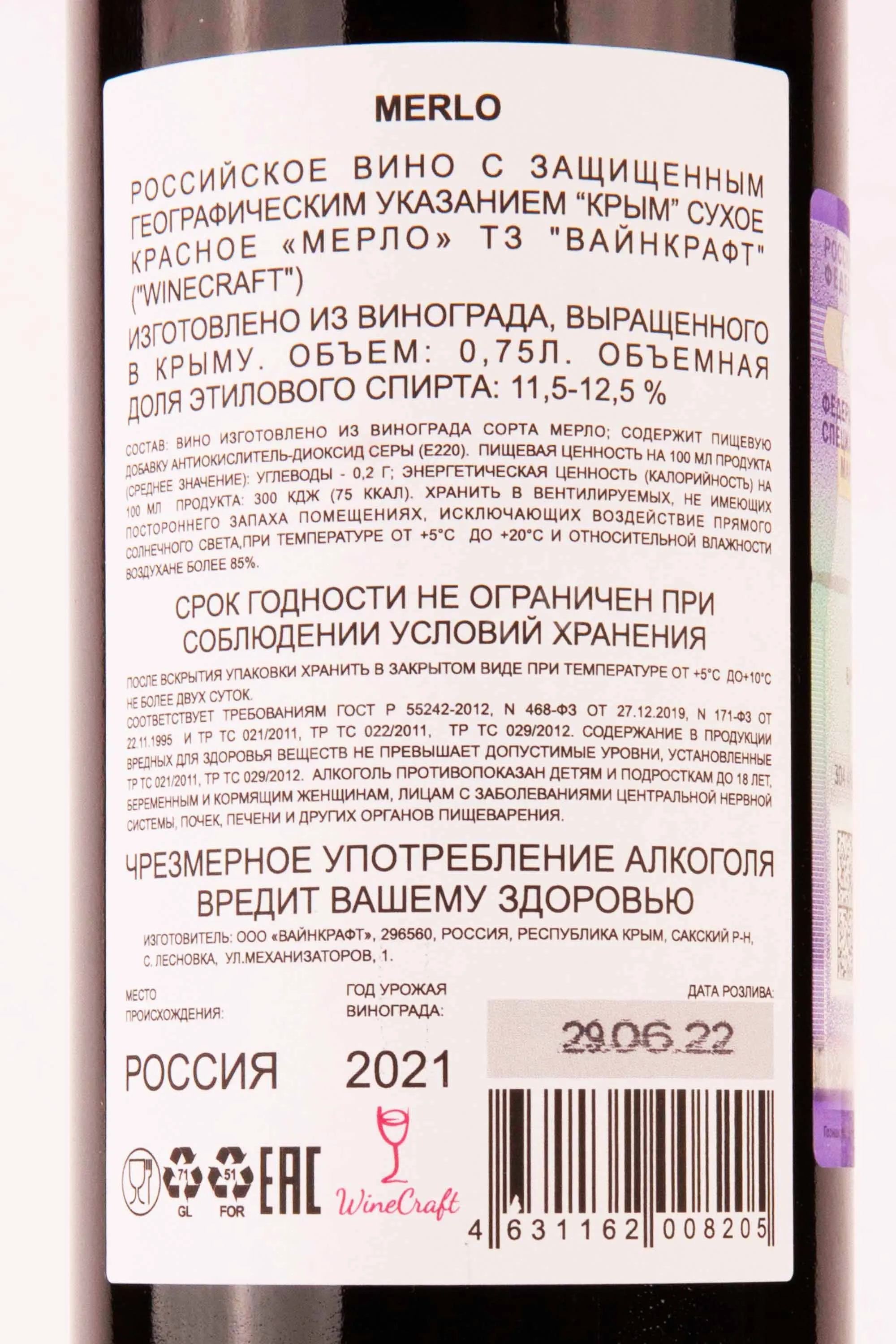 Мерло Т3 Вайнкрафт 2021 0.75 л купить - Российское вино Merlo TZ Winecraft цена в магазине КРЮ ПРОФИ г. Москва, ул. Профсоюзная, д. 16/10 10:00-22:00 Ежедневно +7 (495) 920-20-02 info@cru.ru