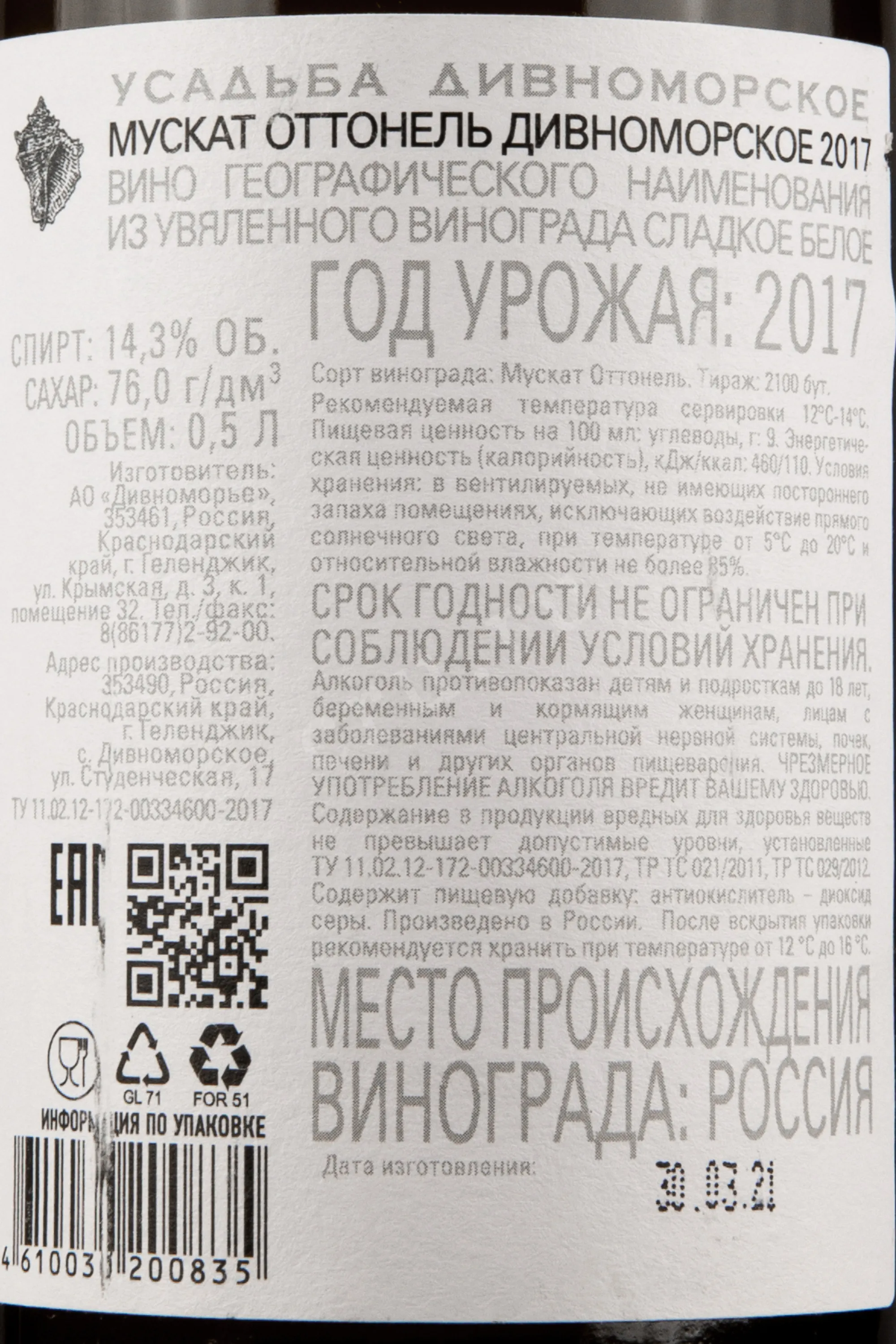Вино Мускат Оттонель Дивноморское 2017 0.75 л