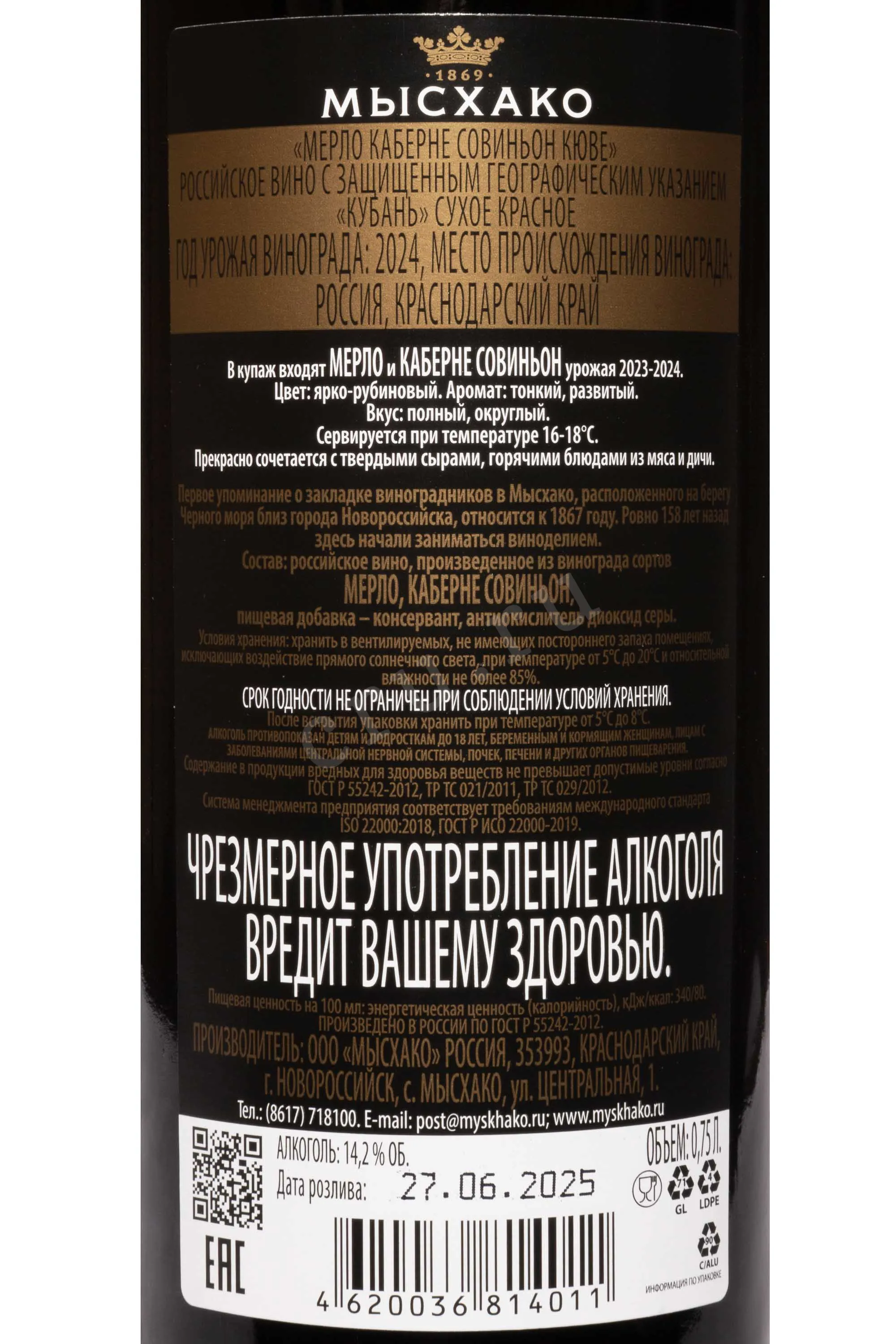 Вино Мысхако Кюве Каберне Совиньон Мерло 2024 0.75 л