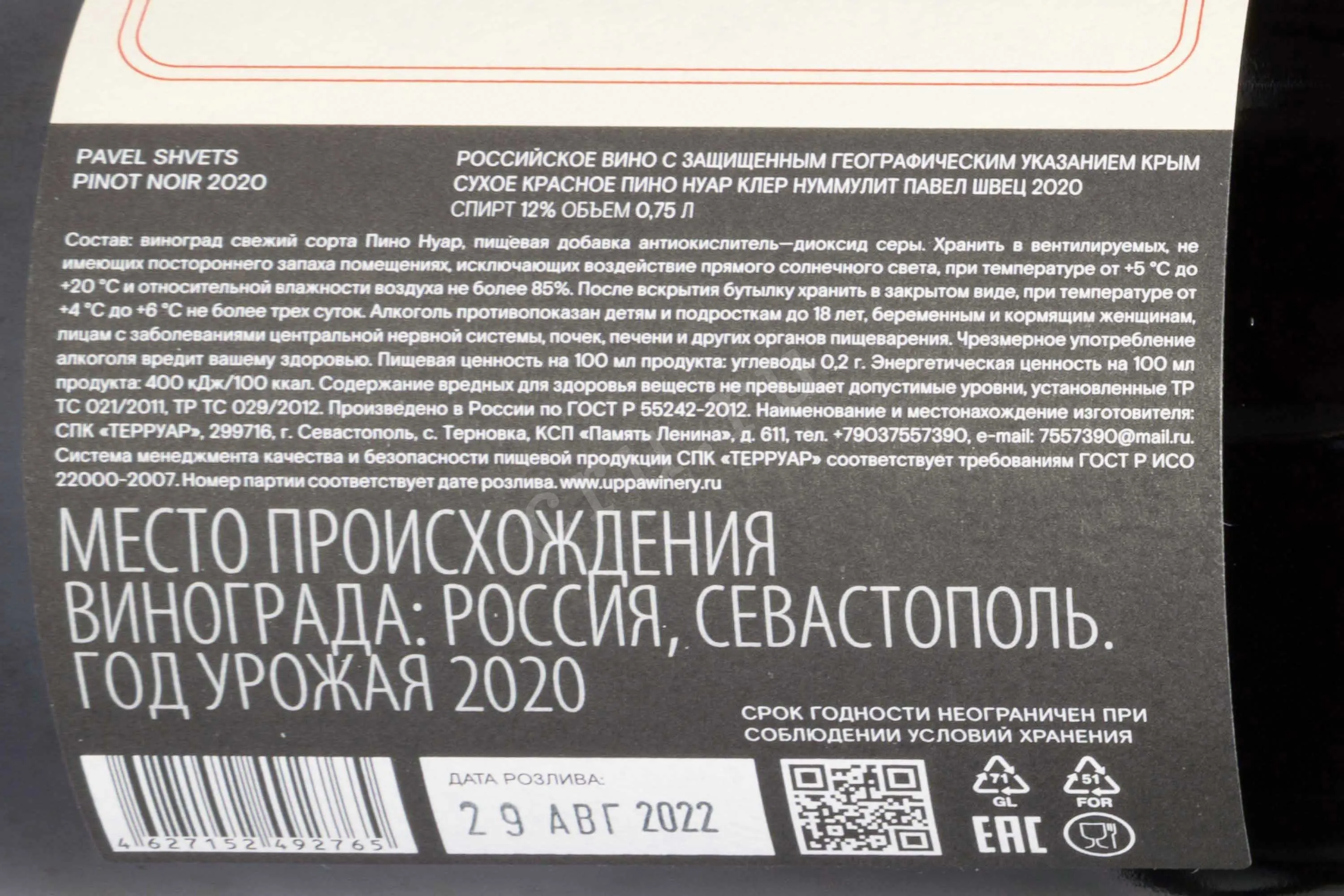 Павел Швец Пино Нуар Клер Нуммулит 2020 0.75 л купить - Российское вино Pavel Shvets Pinot Noir Cler Nummulite цена в магазине КРЮ ПРОФИ г. Москва, ул. Профсоюзная, д. 16/10 10:00-22:00 Ежедневно +7 (495) 920-20-02 info@cru.ru