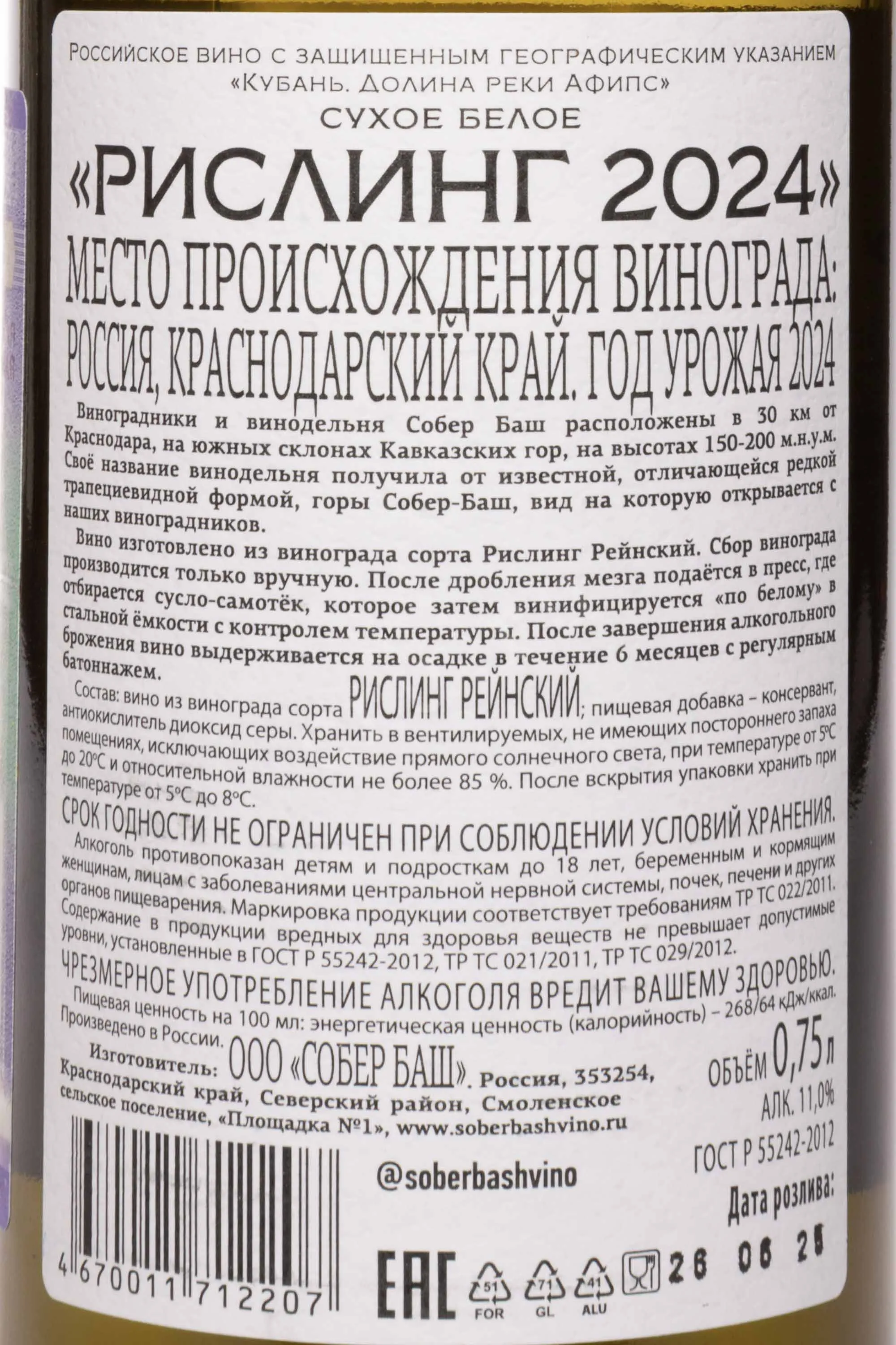 Рислинг Собер Баш 2024 0.75 л купить - Российское вино Riesling Sober Bash цена в магазине КРЮ ПРОФИ г. Москва, ул. Профсоюзная, д. 16/10 10:00-22:00 Ежедневно +7 (495) 920-20-02 info@cru.ru